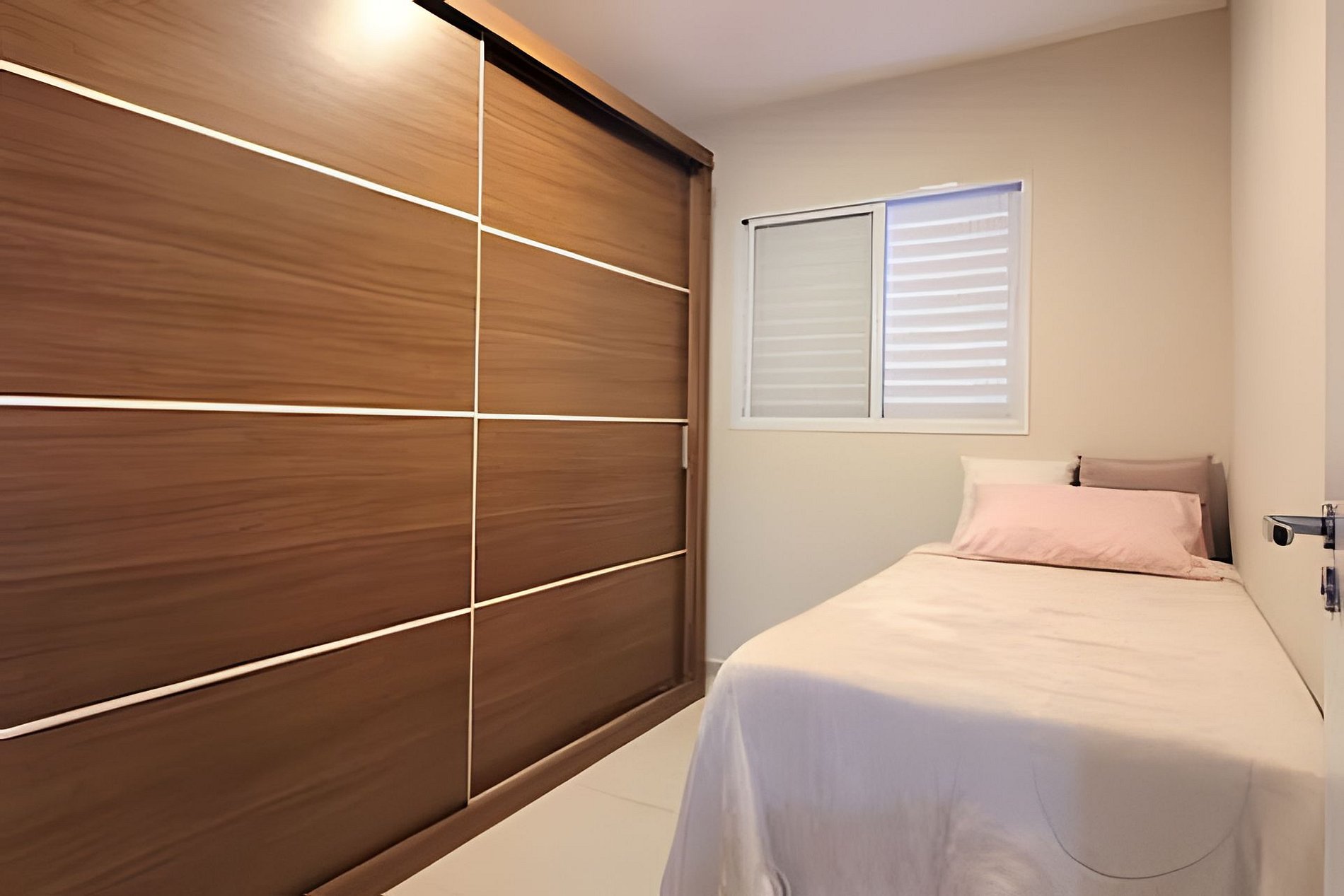 - Dois dormitórios (um quarto com cama de casal e outro com cama de solteiro)