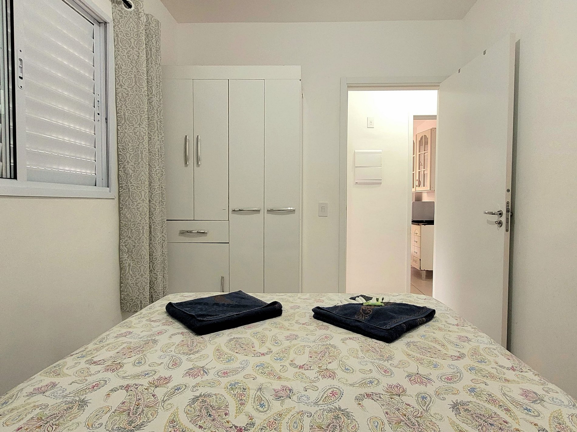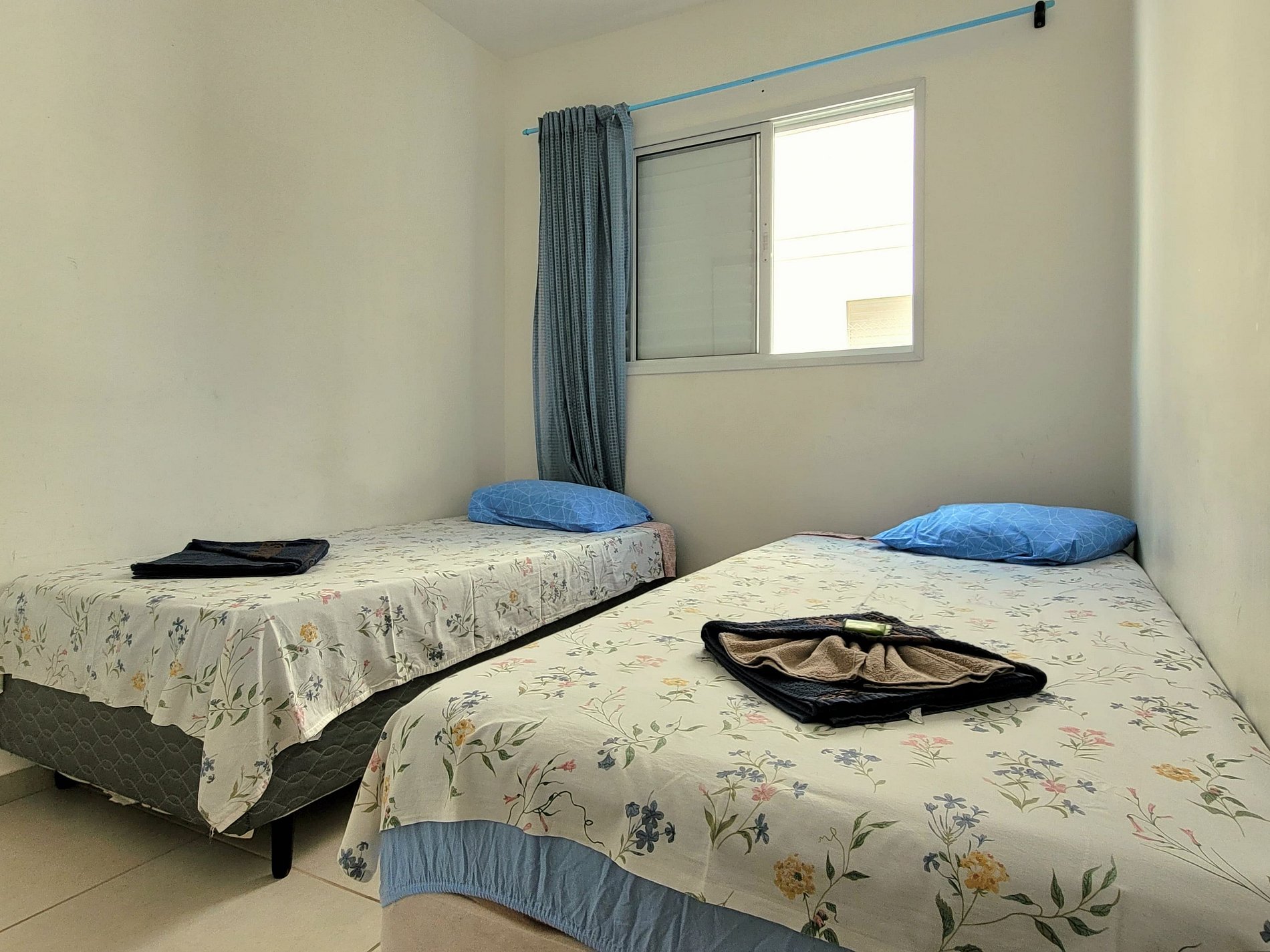 - Dois dormitórios (um quarto com cama de casal e outro com duas camas de solteiro)