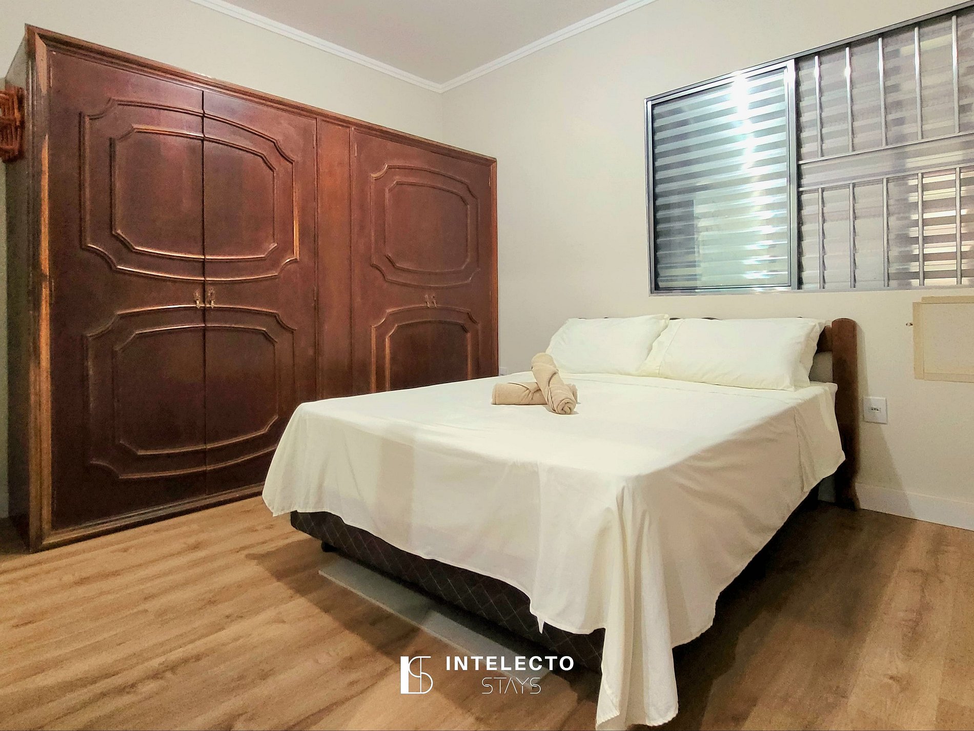 - Duas suítes com camas de casal e guarda-roupas
