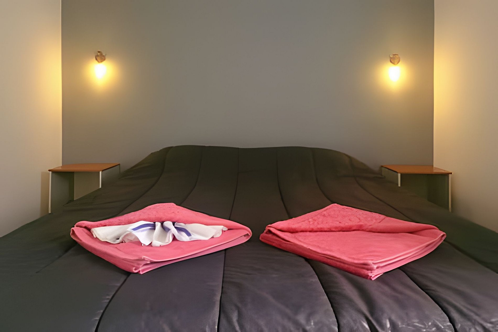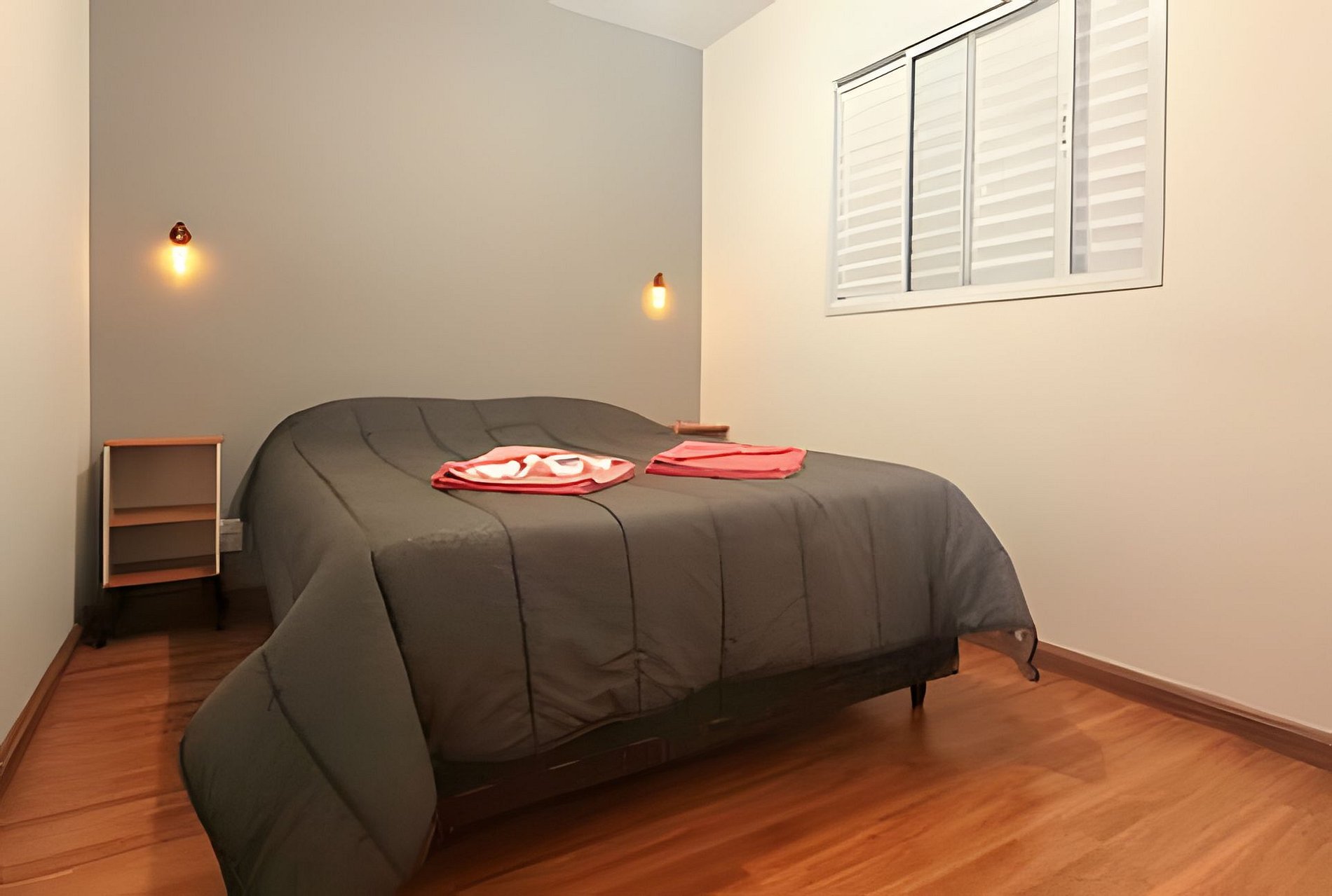 - dois dormitórios (um quarto com cama de casal e outro com duas camas de solteiro)