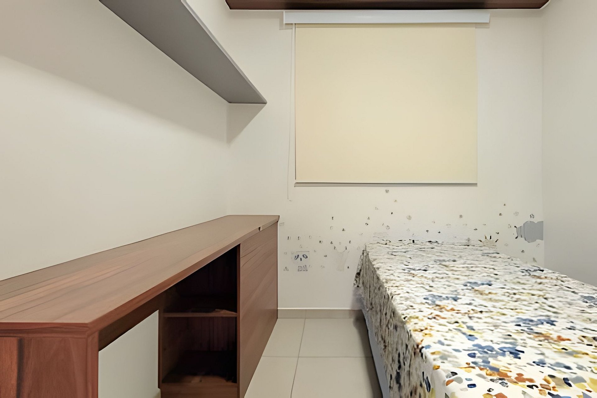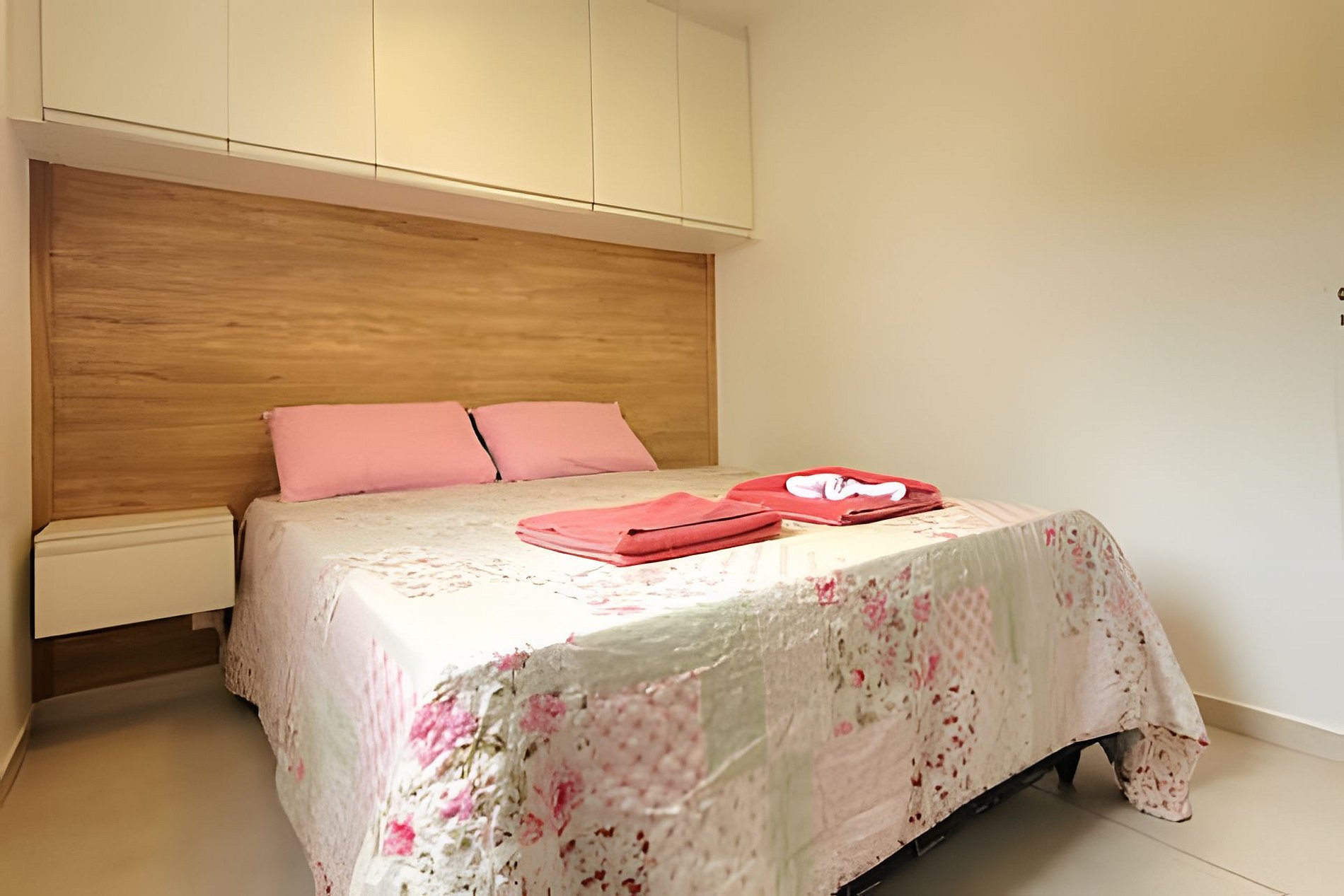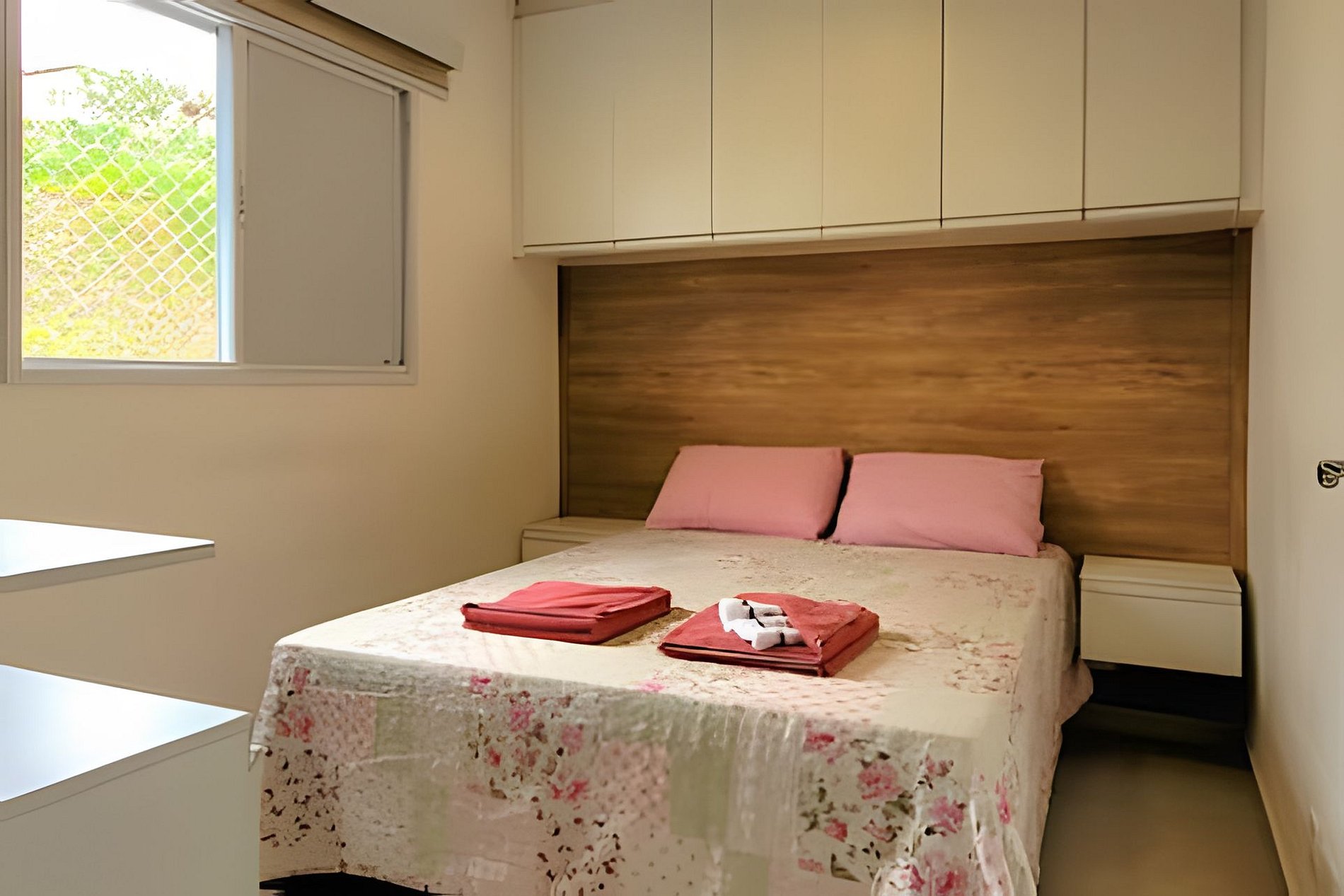 - Dois dormitórios (um quarto com cama de casal e outro com uma cama de solteiro)
