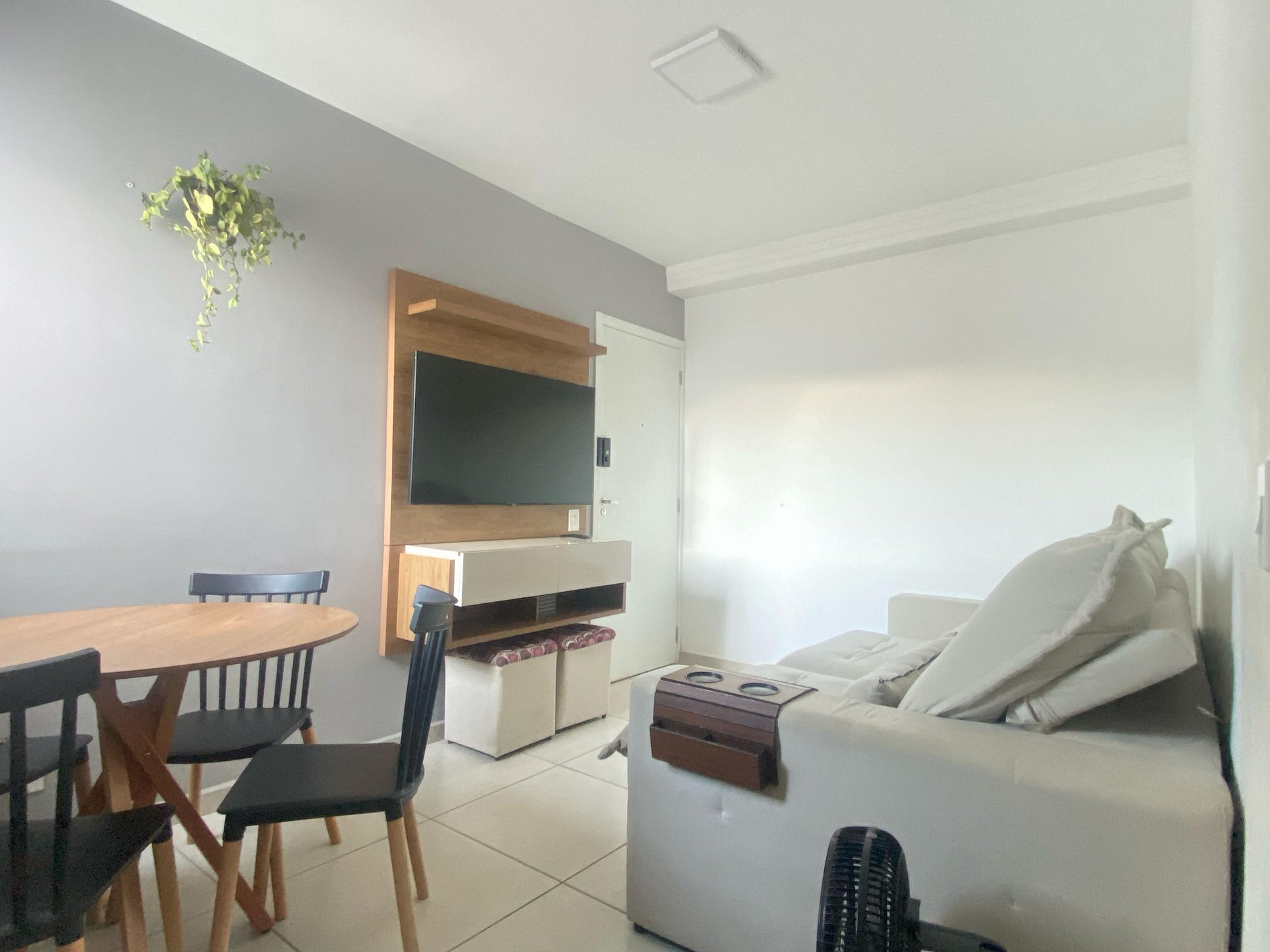 - Sala de dois ambientes aconchegante com mesa de 4 lugares, sofá-cama confortável e SmarTV com streamings.
