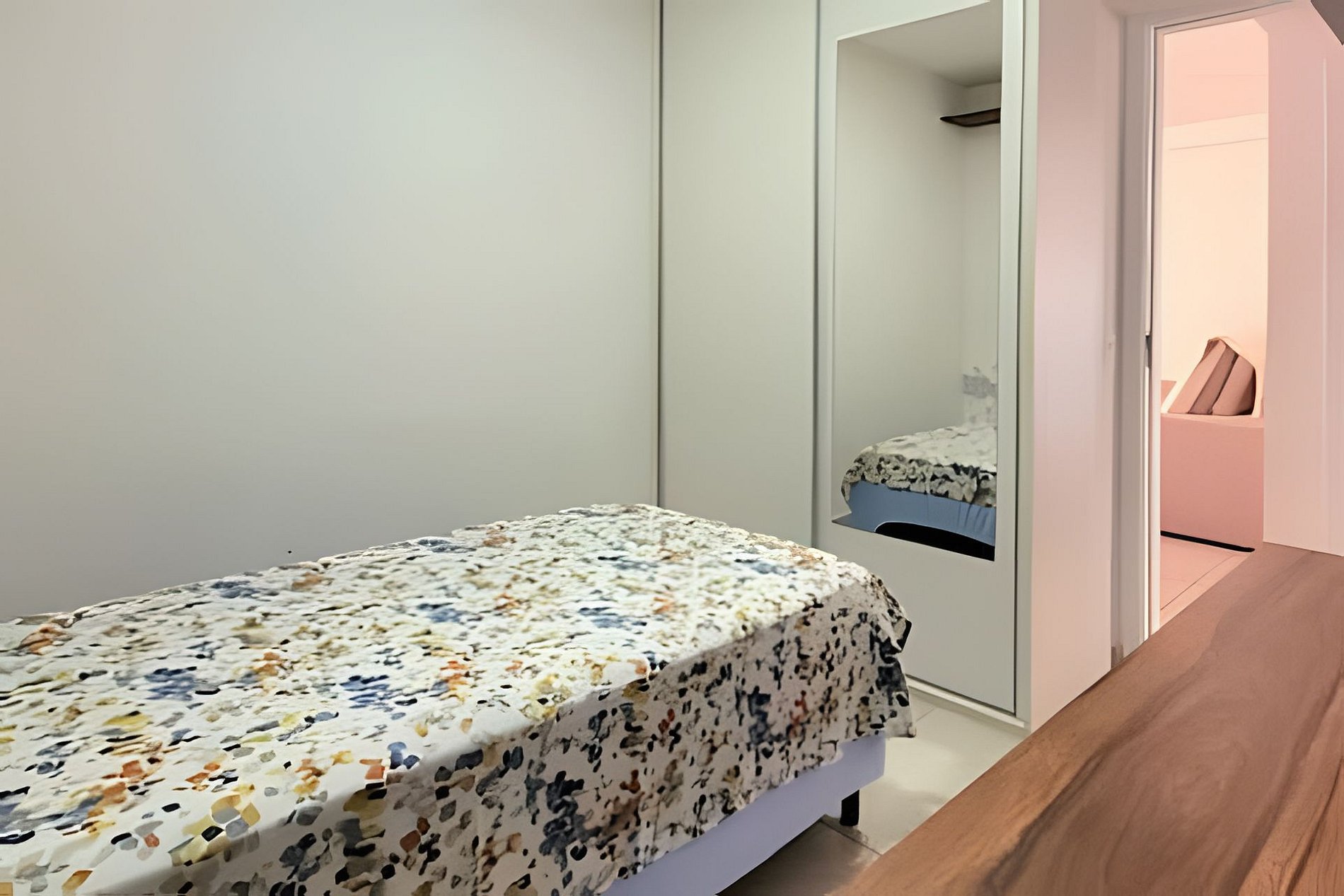 - Dois dormitórios (um quarto com cama de casal e outro com uma cama de solteiro)