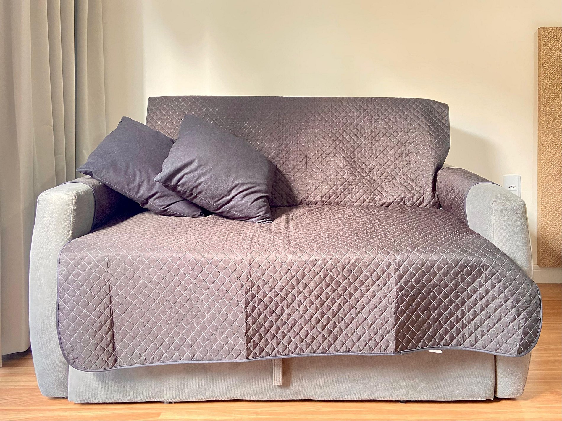 - Espaços integrados (quarto com cama queen e sala de estar com sofá-cama) com armários e guarda-roupas planejados
