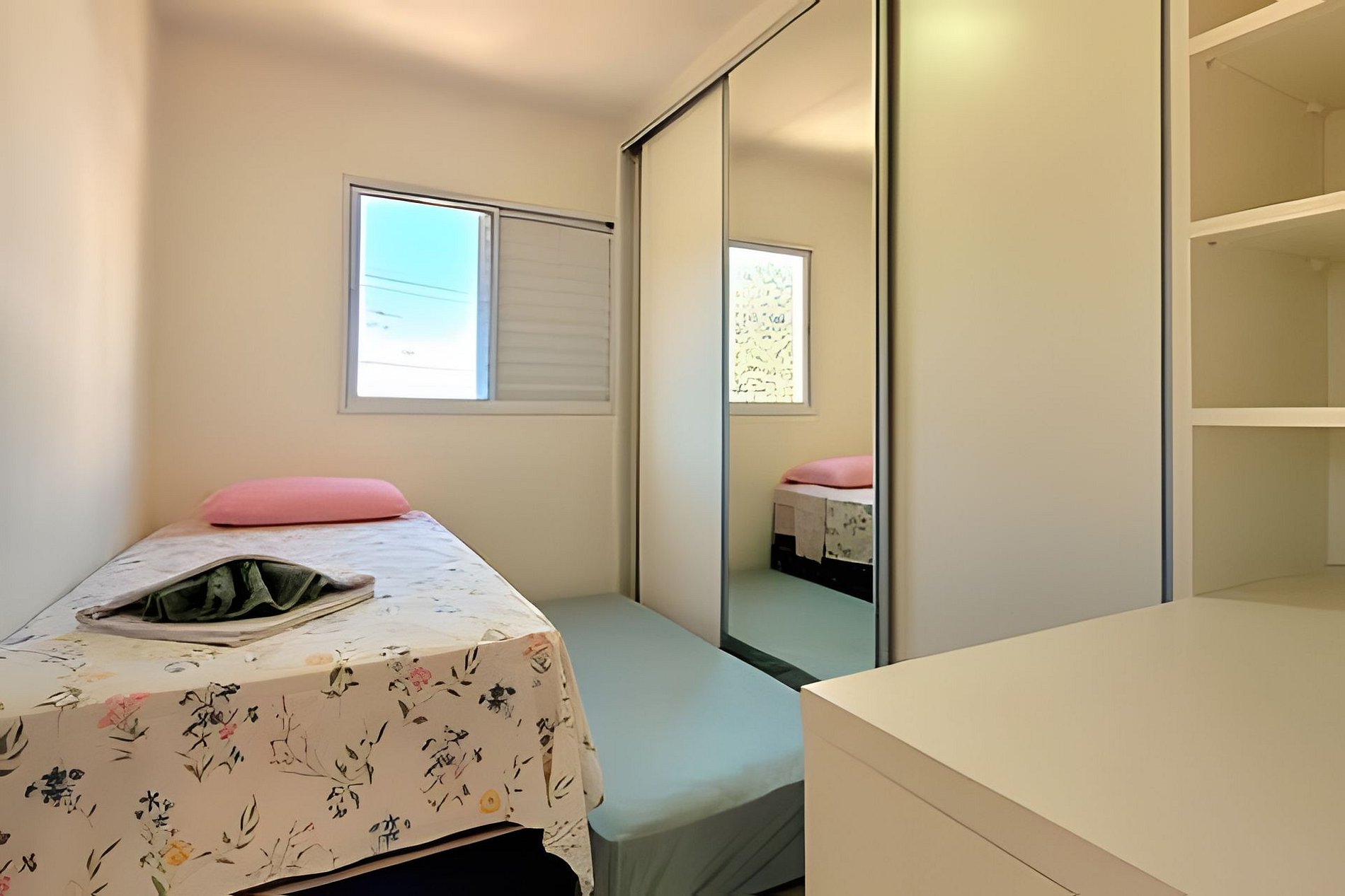- dois dormitórios (um quarto com cama de casal e outro com duas camas de solteiro)