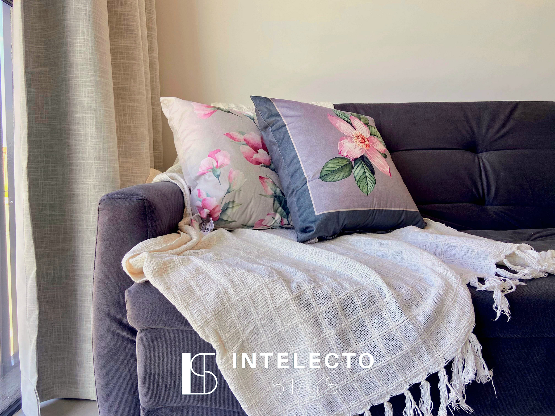 - Espaços integrados (quarto com cama queen e sofá-cama) com armários e guarda-roupas planejados