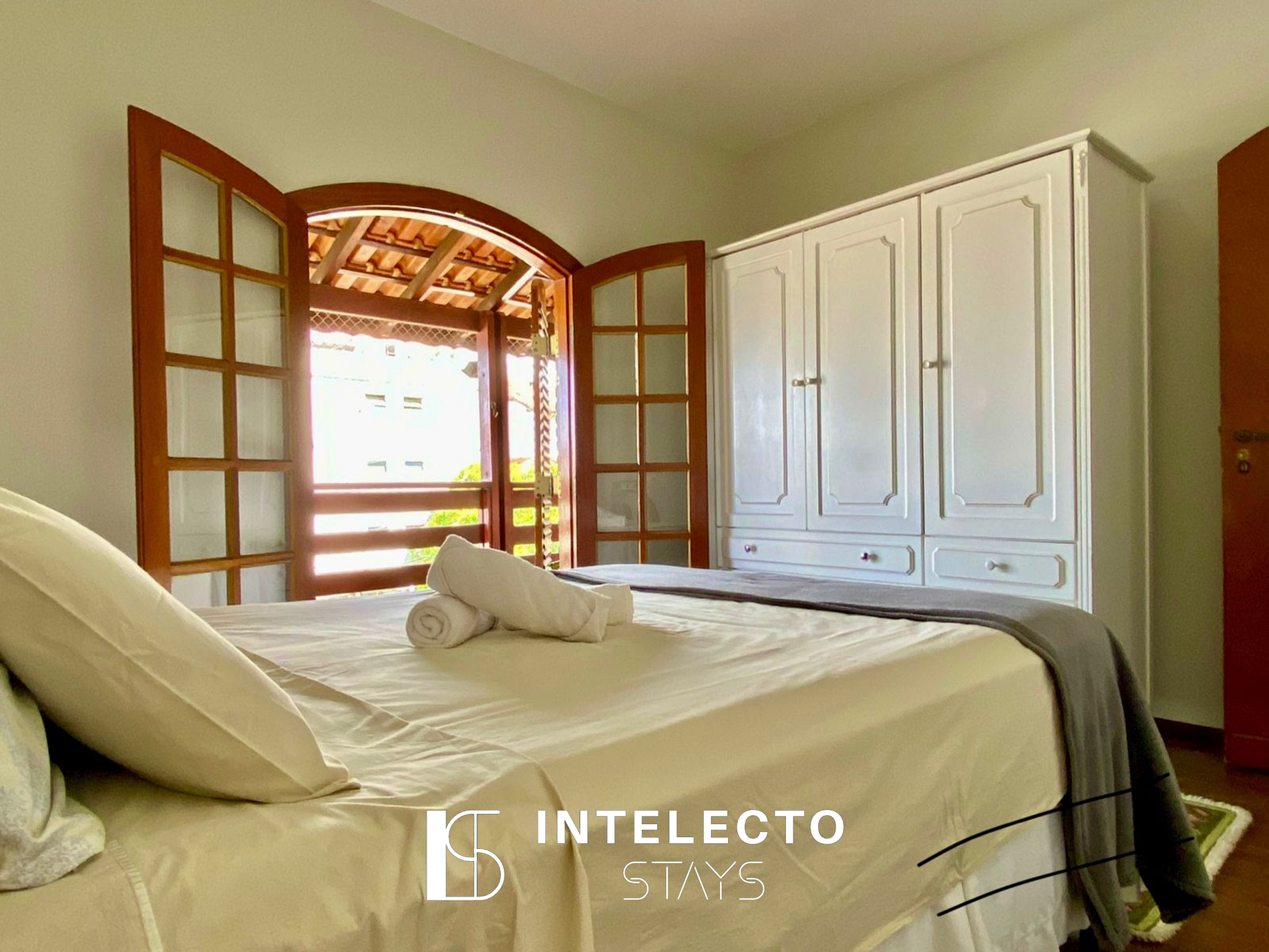Vocês receberão a senha para acesso ao cofre com as chaves e senha da fechadura eletrônica para entrar na casa. A casa será toda de vocês durante a estadia