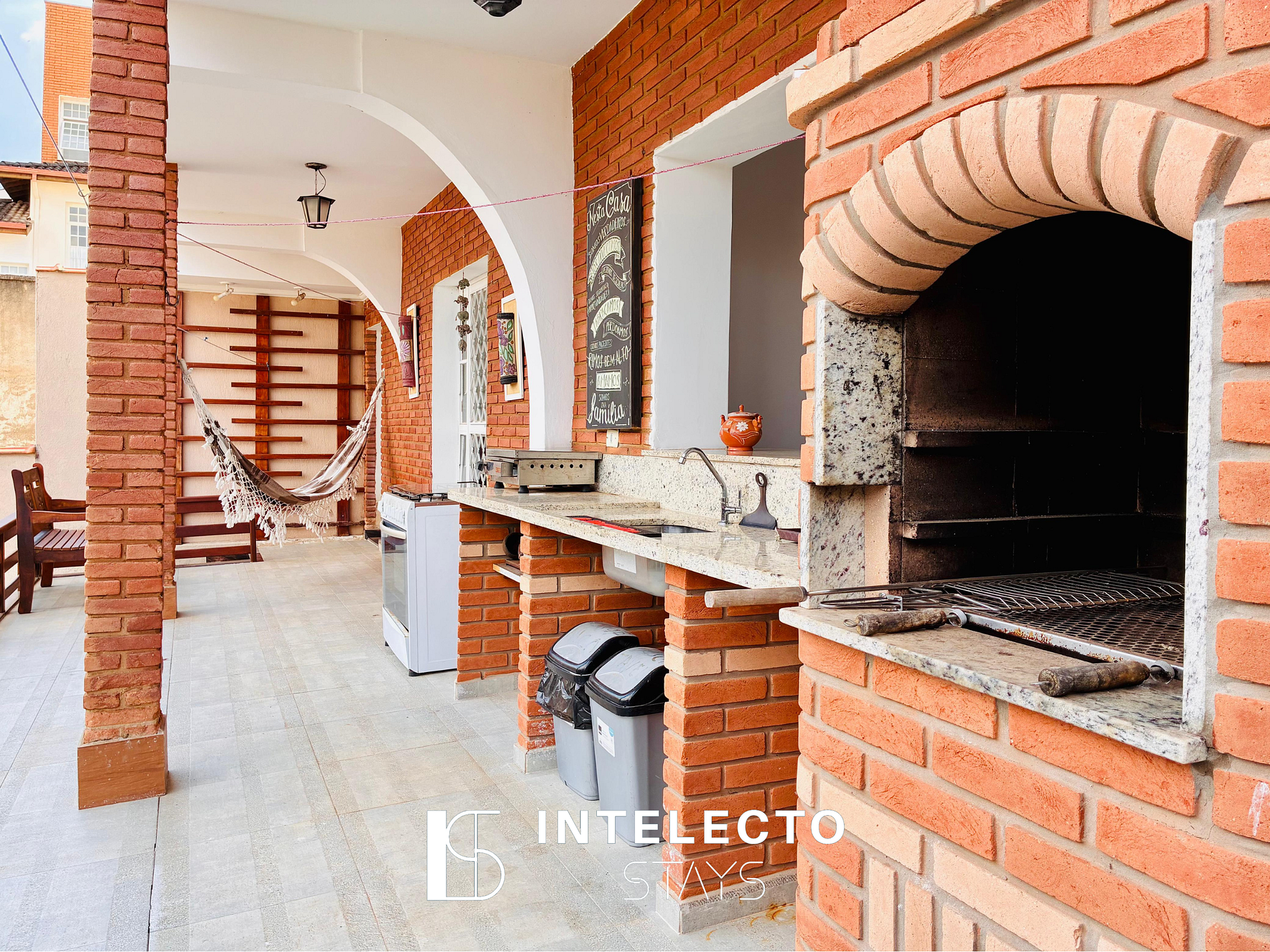 - Pátio com churrasqueira, rede de descanso