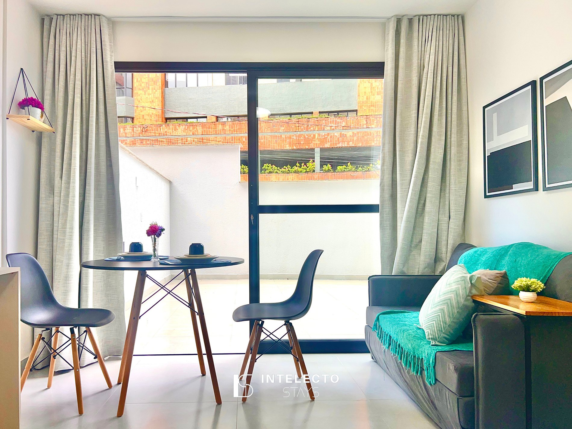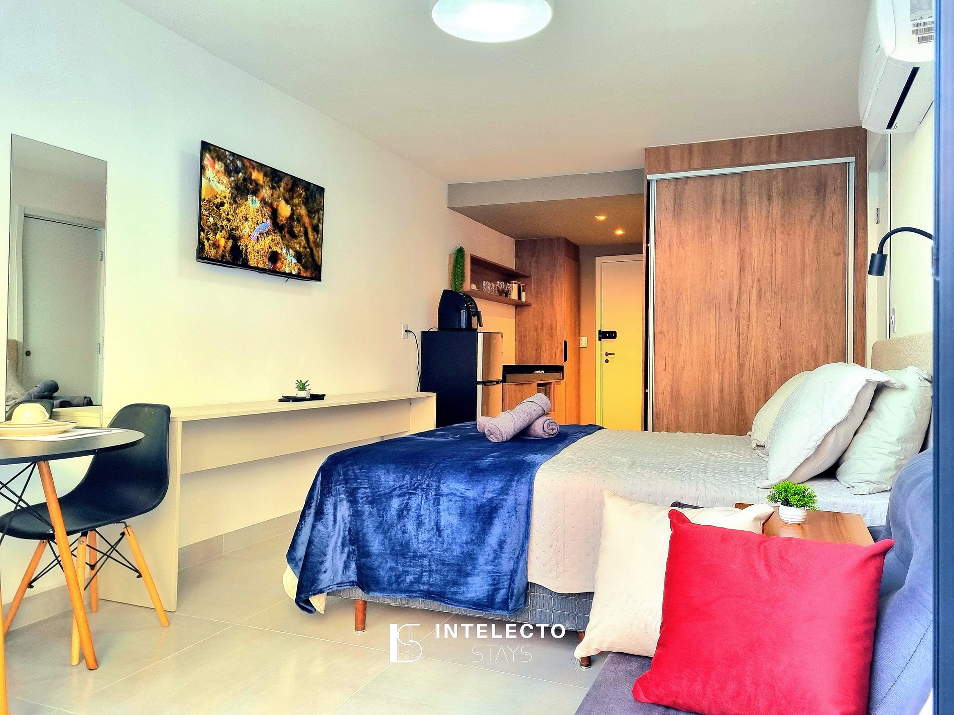 Apê excepcional para relaxar e curtir tudo que há de melhor em Poços. Seja algumas noites ou por meses, esse studio é ideal. Prédio na área central da cidade, perto de tudo, com portaria virtual 24h, elevador, piscina, academia, terraço, área gourmet, lavanderia, vista linda no terraço, todo mobiliado, equipado, muito funcional e confortável. Self check-in fácil, internet ótima, ar condicionado, Smart TV, kit para café, além de vaga coberta de garagem. Fornecemos toalha, roupa de cama e coberta.