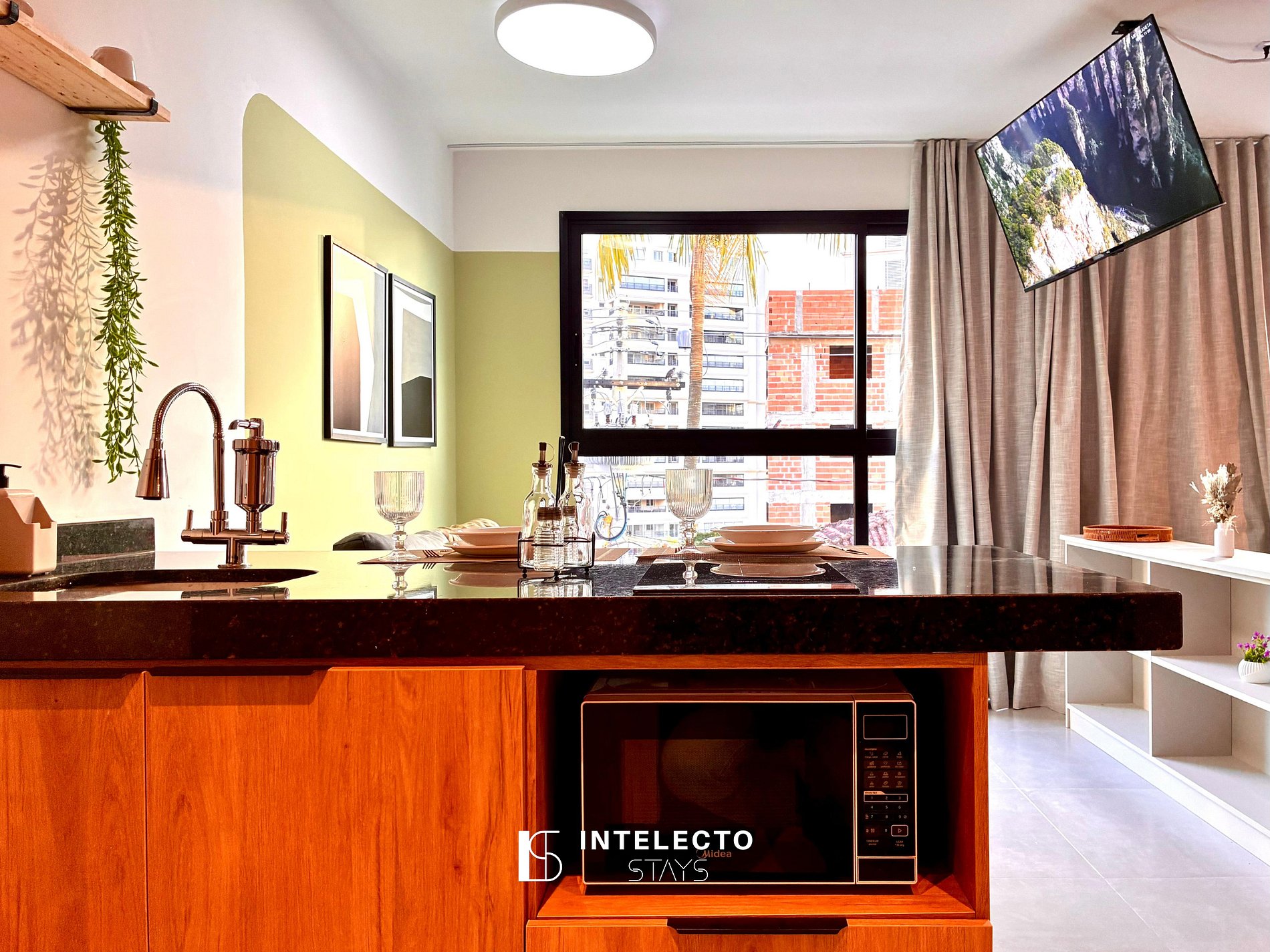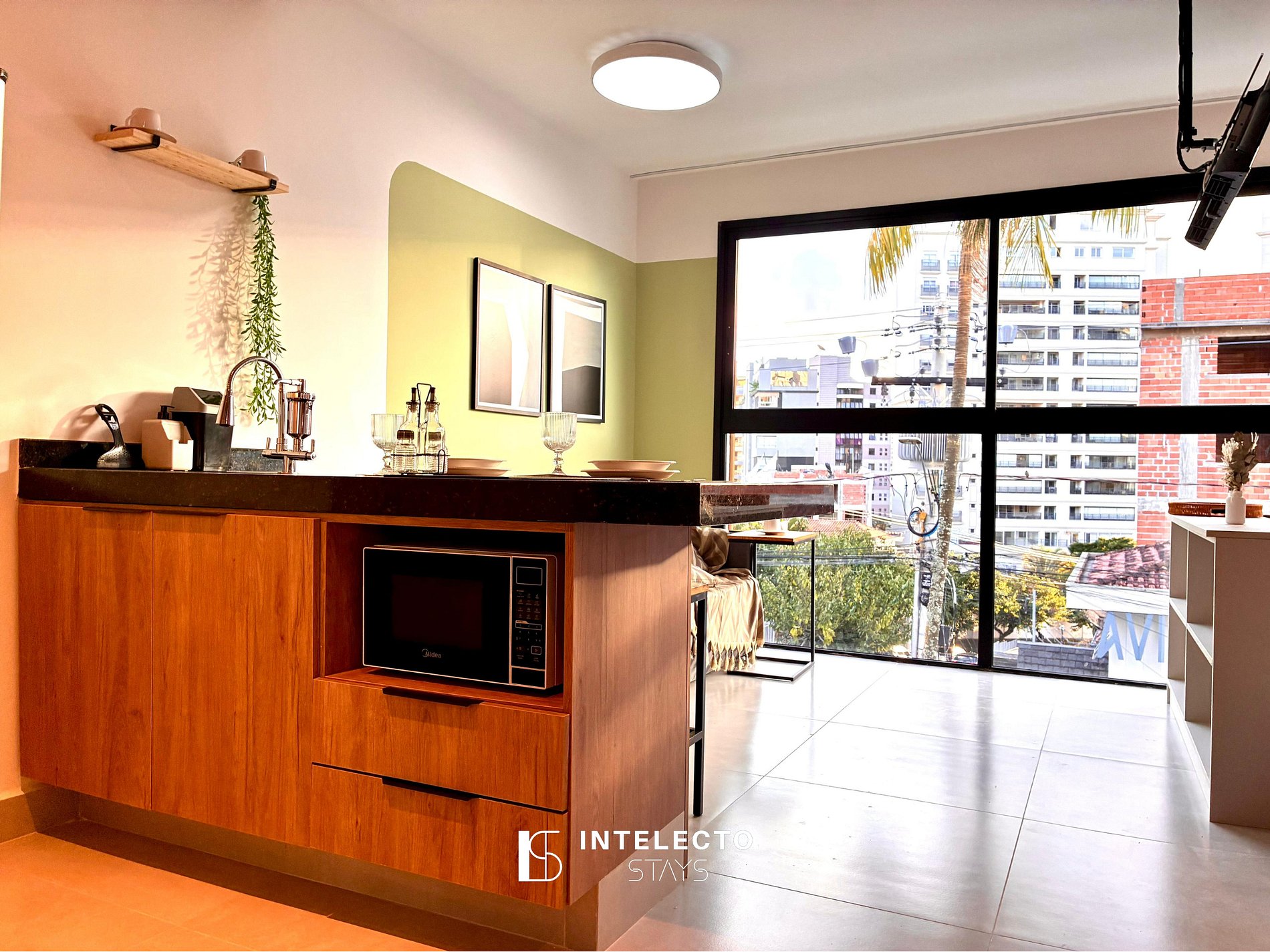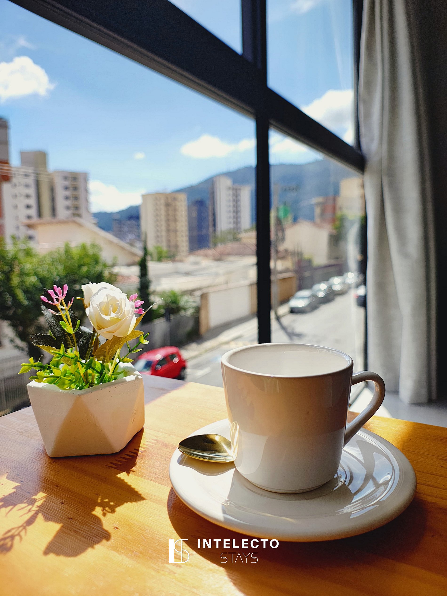 Situado na área central de Poços, perto de tudo. É muito tranquilo, seguro e organizado, com portaria 24 horas, self check-in com reconhecimento facial e uma vista linda da cidade.