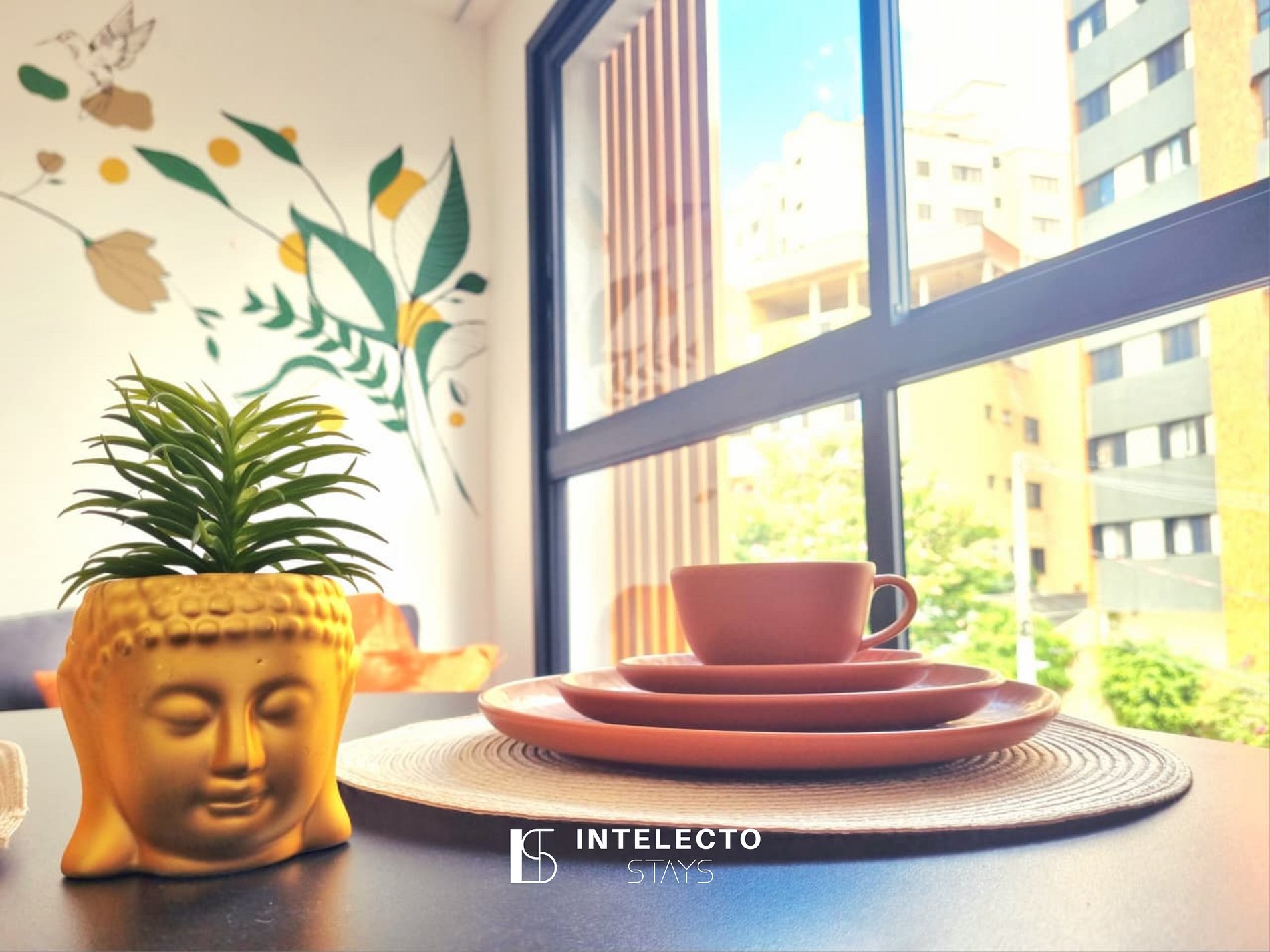 Situado na área central de Poços, perto de tudo. É muito tranquilo, seguro e organizado, com portaria 24 horas, self check-in com reconhecimento facial e uma vista linda da cidade.