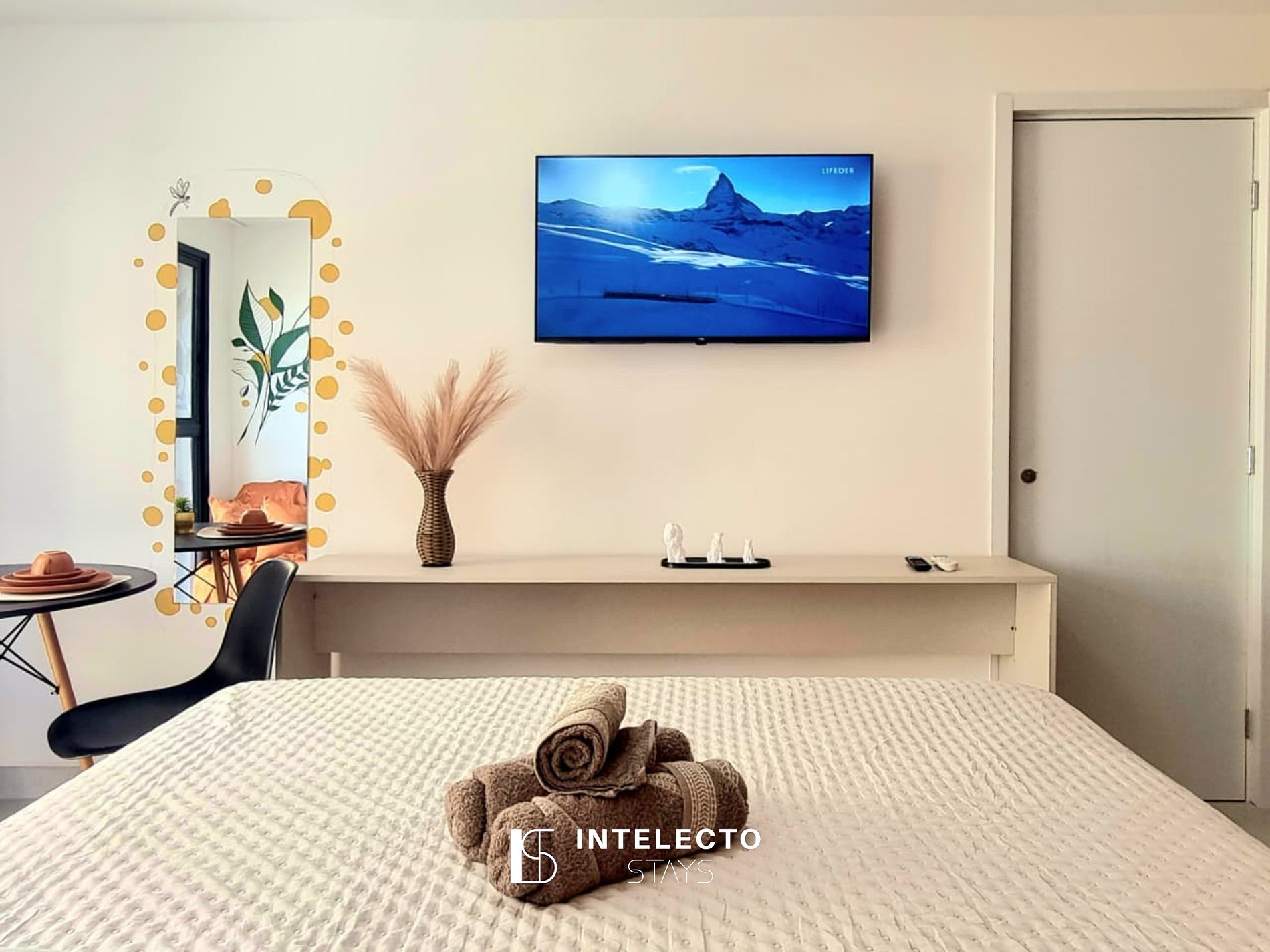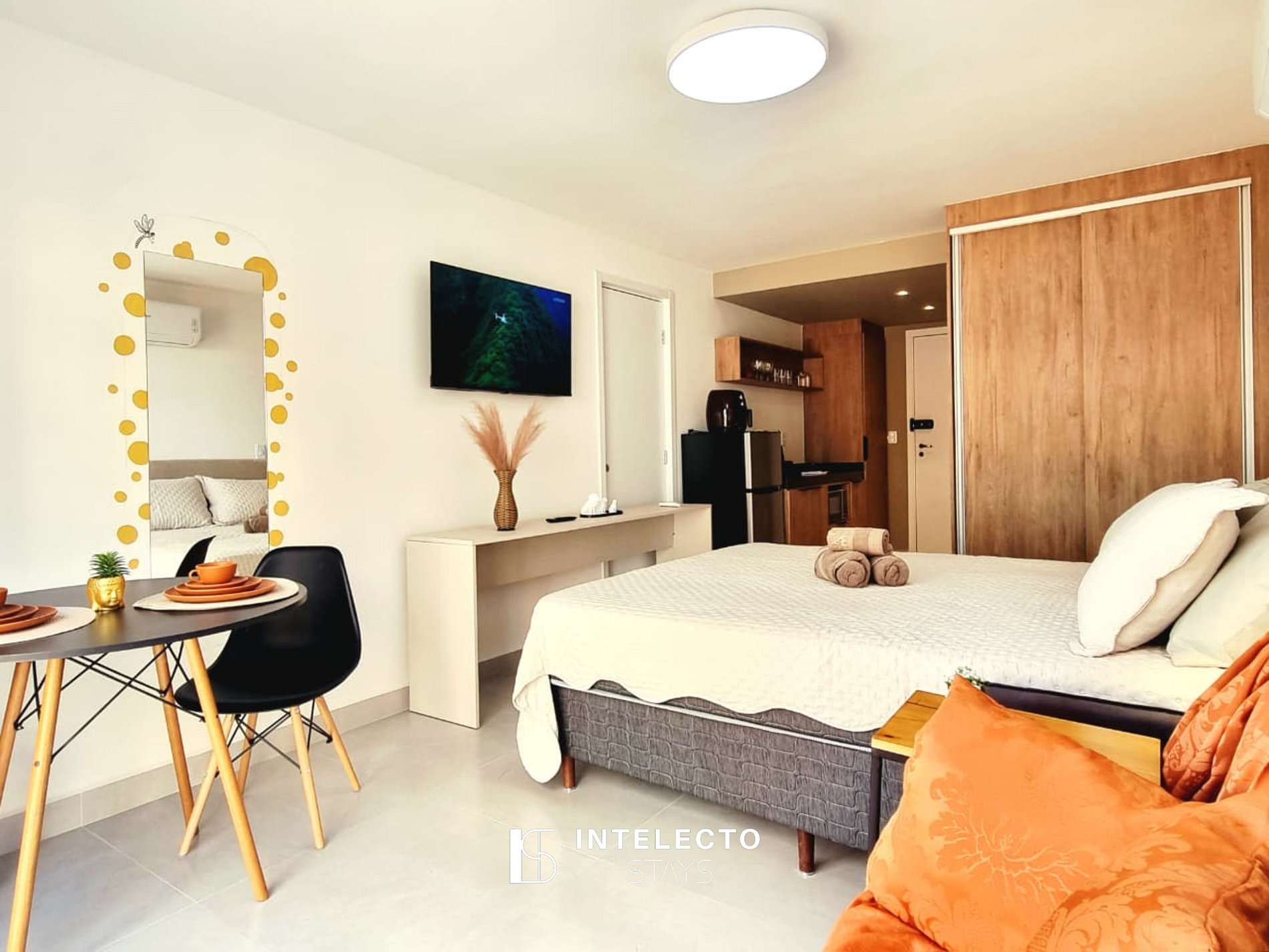 Apê excepcional para relaxar e curtir tudo que há de melhor em Poços. Seja algumas noites ou por meses, esse studio é ideal. Prédio na área central da cidade, perto de tudo, com portaria virtual 24h, elevador, piscina, academia, terraço, área gourmet, lavanderia, vista linda no terraço, todo mobiliado, equipado, muito funcional e confortável. Self check-in fácil, internet ótima, ar condicionado, Smart TV, kit para café, além de vaga coberta de garagem. Fornecemos toalha, roupa de cama e coberta.