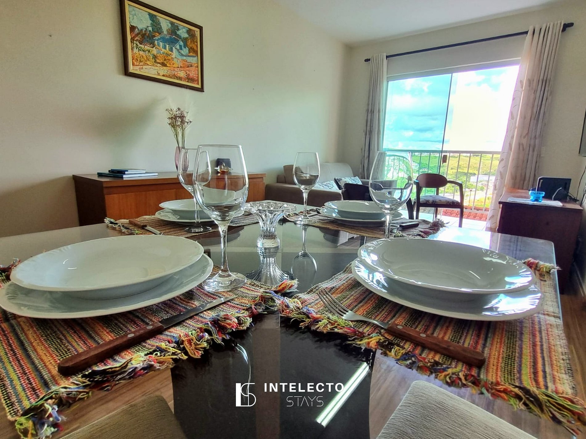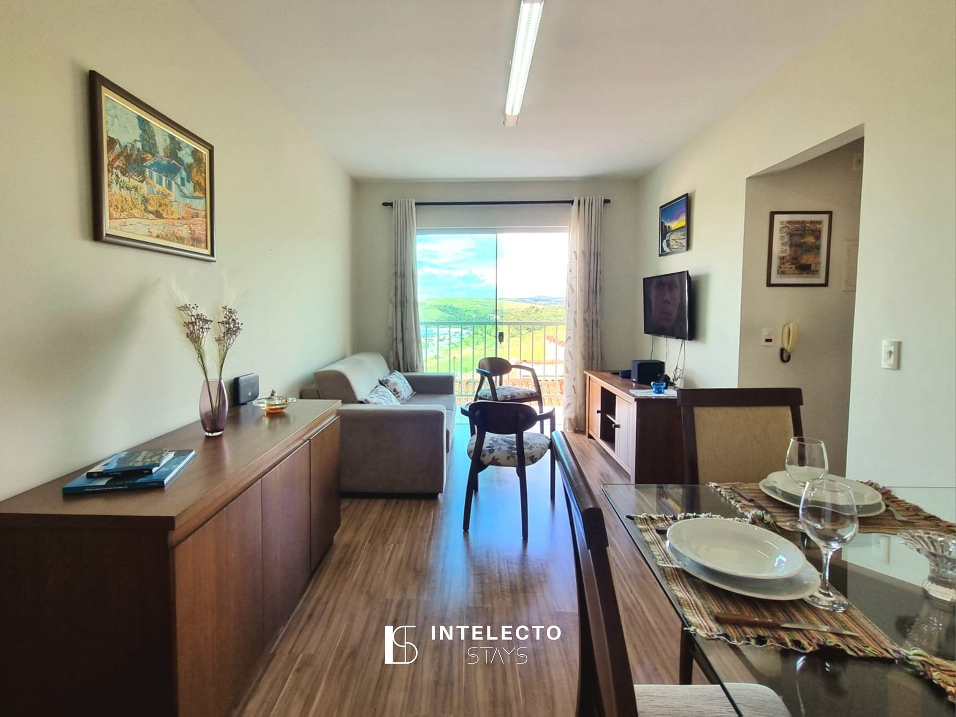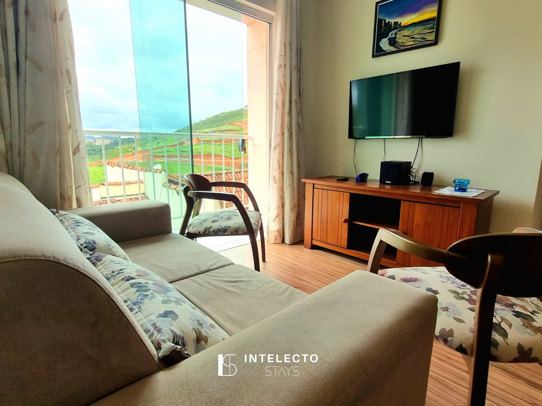 Nosso apartamento oferece um ambiente acolhedor, com vista deslumbrante para as montanhas e para a cidade.