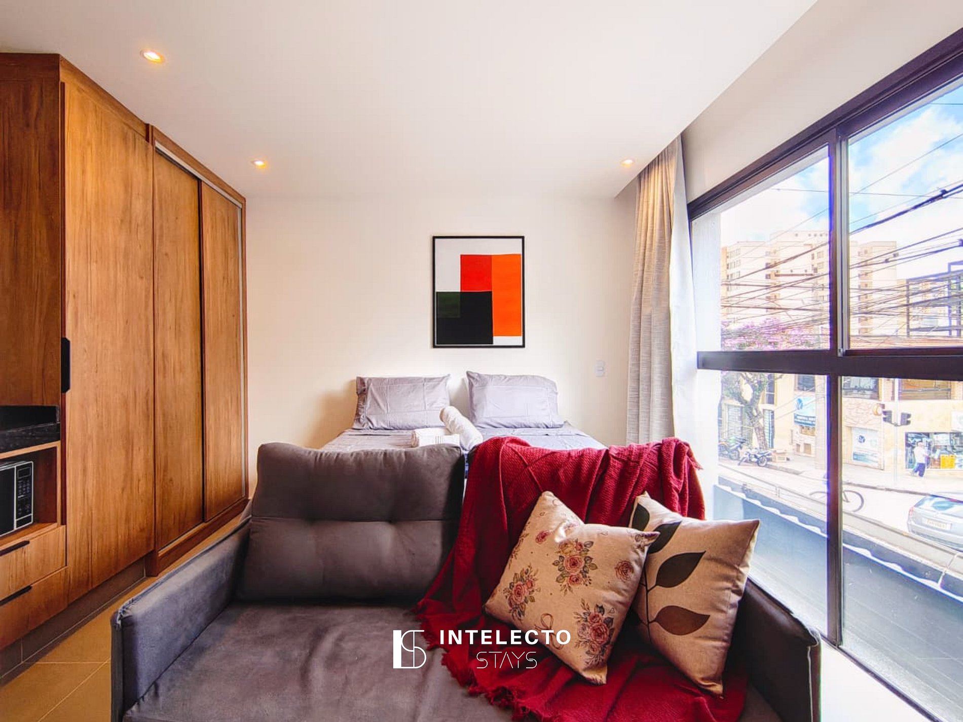 Apê excepcional para curtir tudo que há de melhor em Poços. Seja algumas noites ou por meses, nosso studio é o ideal. Prédio no coração da cidade, perto de tudo, com portaria virtual 24h, todo mobiliado e equipado, muito funcional e confortável. Self check-in fácil, internet ótima, ar condicionado, Smart TV, kit para café, convenio com estacionamento próximo para ter desconto ao deixar seu veiculo. Fornecemos toalha, roupa de cama e coberta
