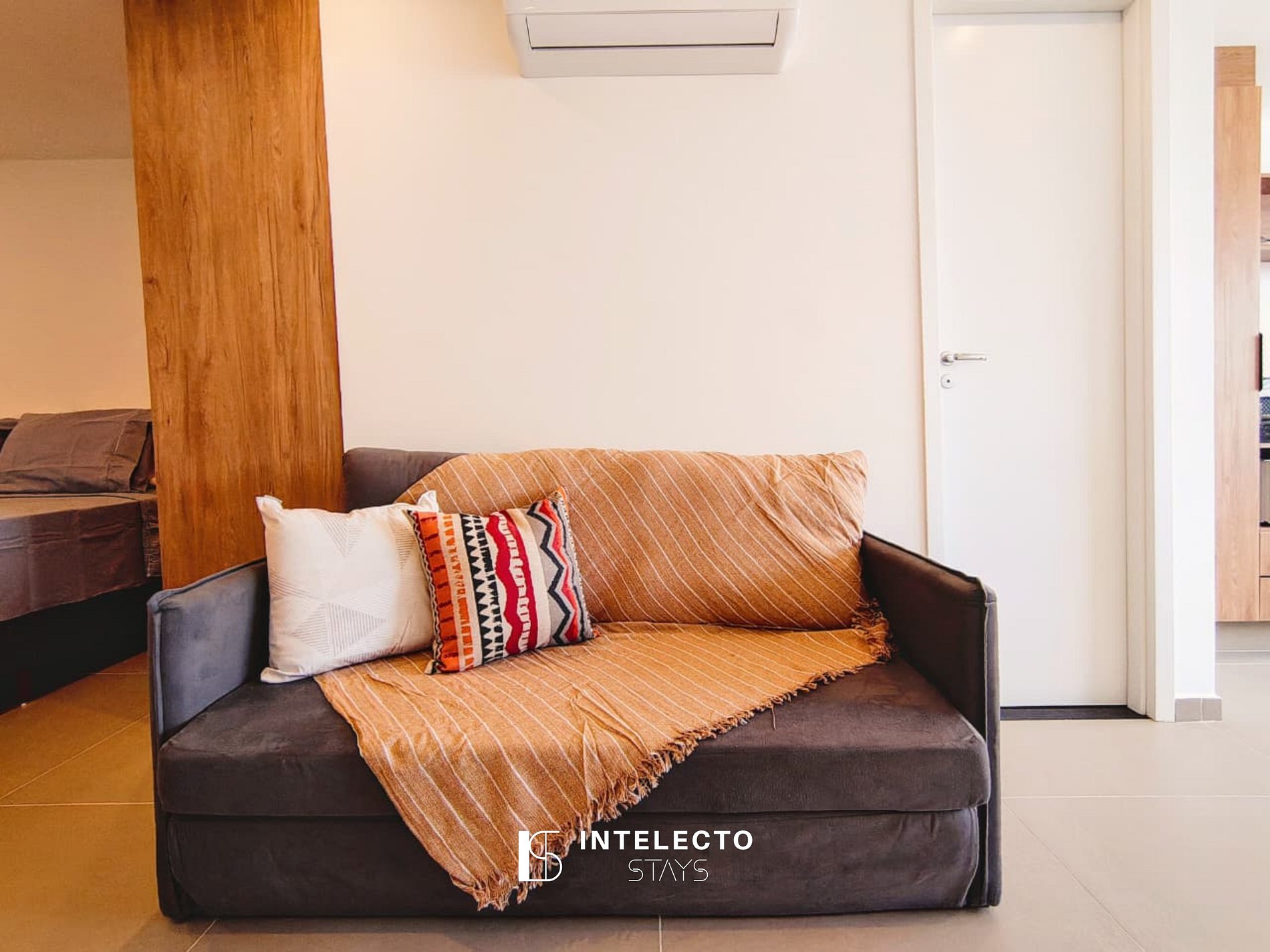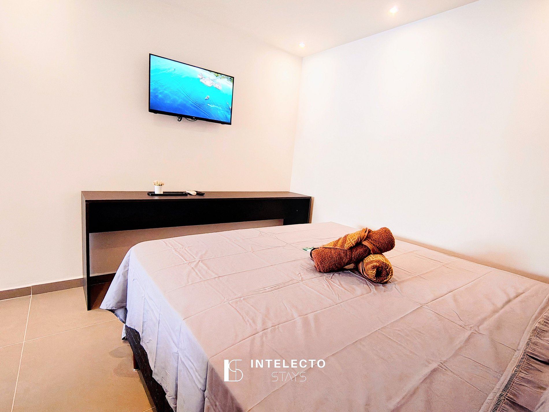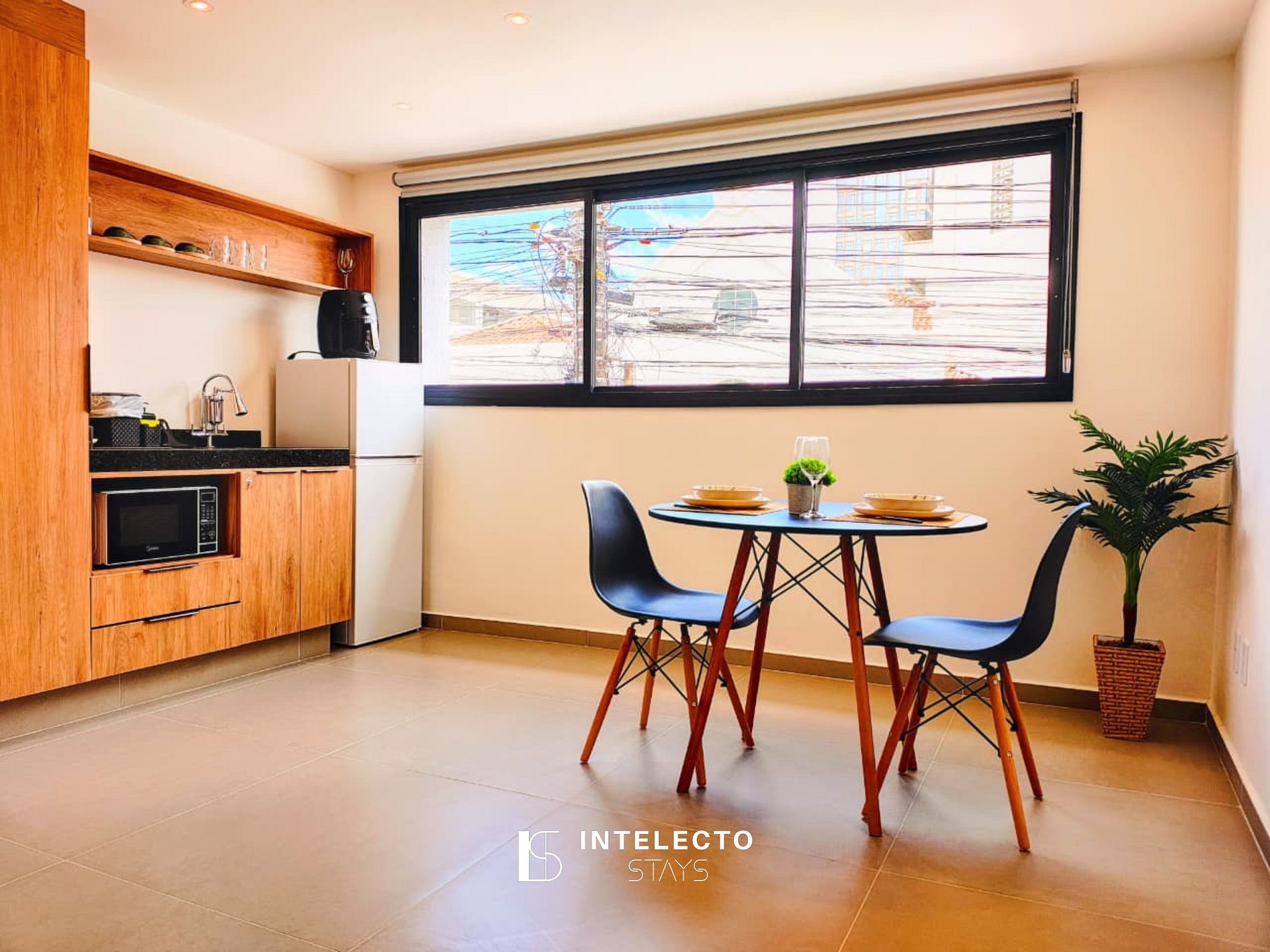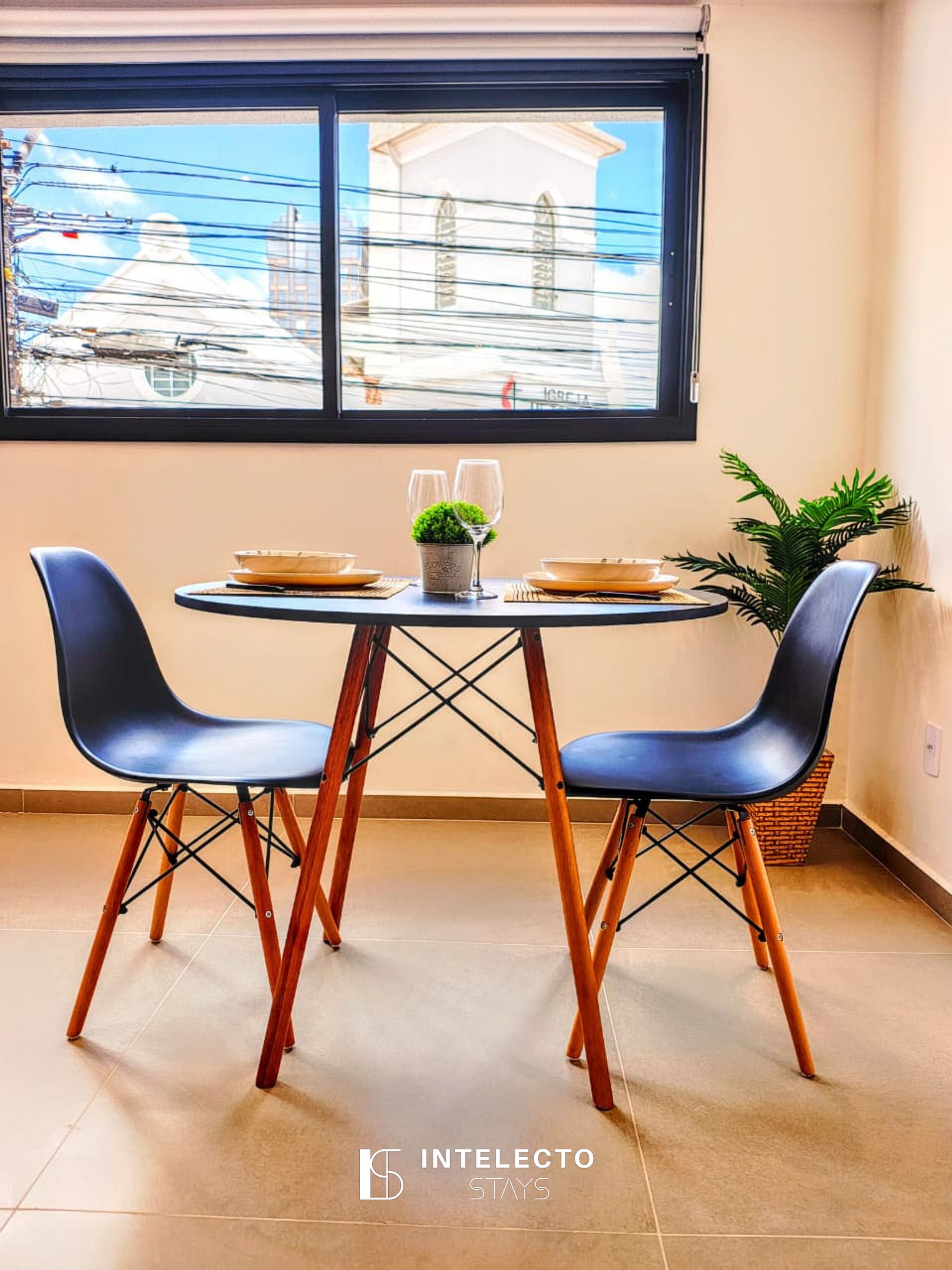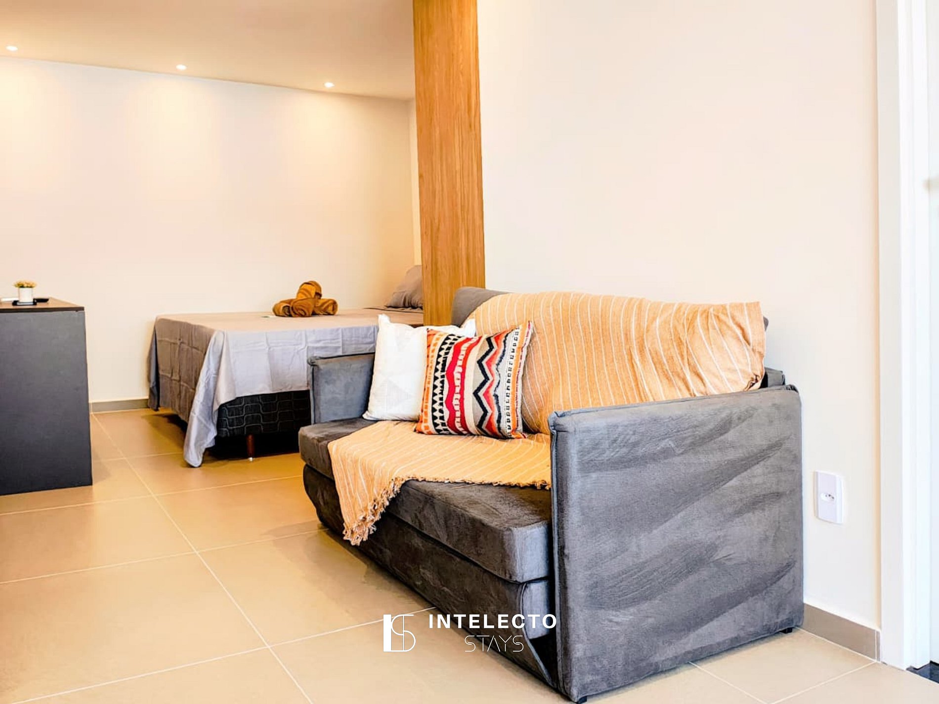 Apê excepcional para relaxar e curtir tudo que há de melhor em Poços. Seja algumas noites ou por meses, nosso studio é o ideal. Prédio nno coração da cidade, perto de tudo, com portaria virtual 24h, todo mobiliado e equipado, muito funcional e confortável. Self check-in fácil, internet ótima, ar condicionado, Smart TV, kit para café, convenio com estacionamento próximo para ter desconto ao deixar seu veiculo. Fornecemos toalha, roupa de cama e coberta