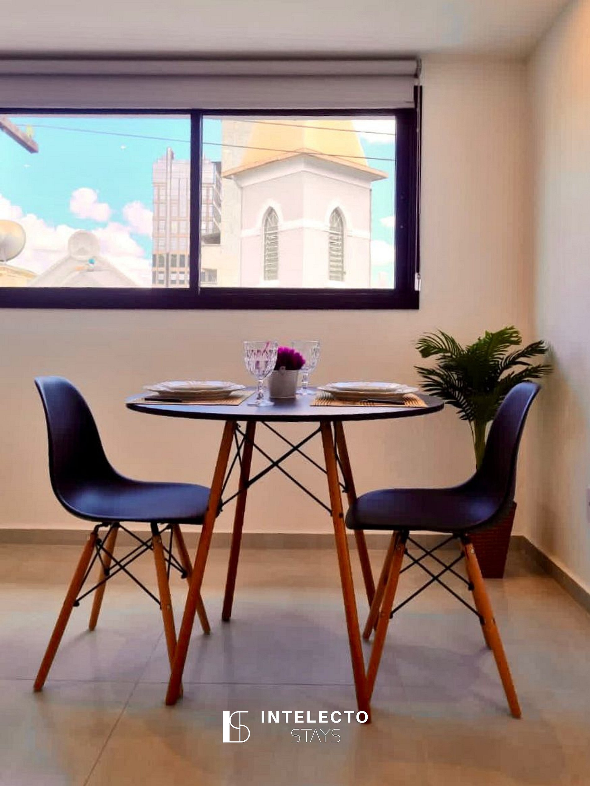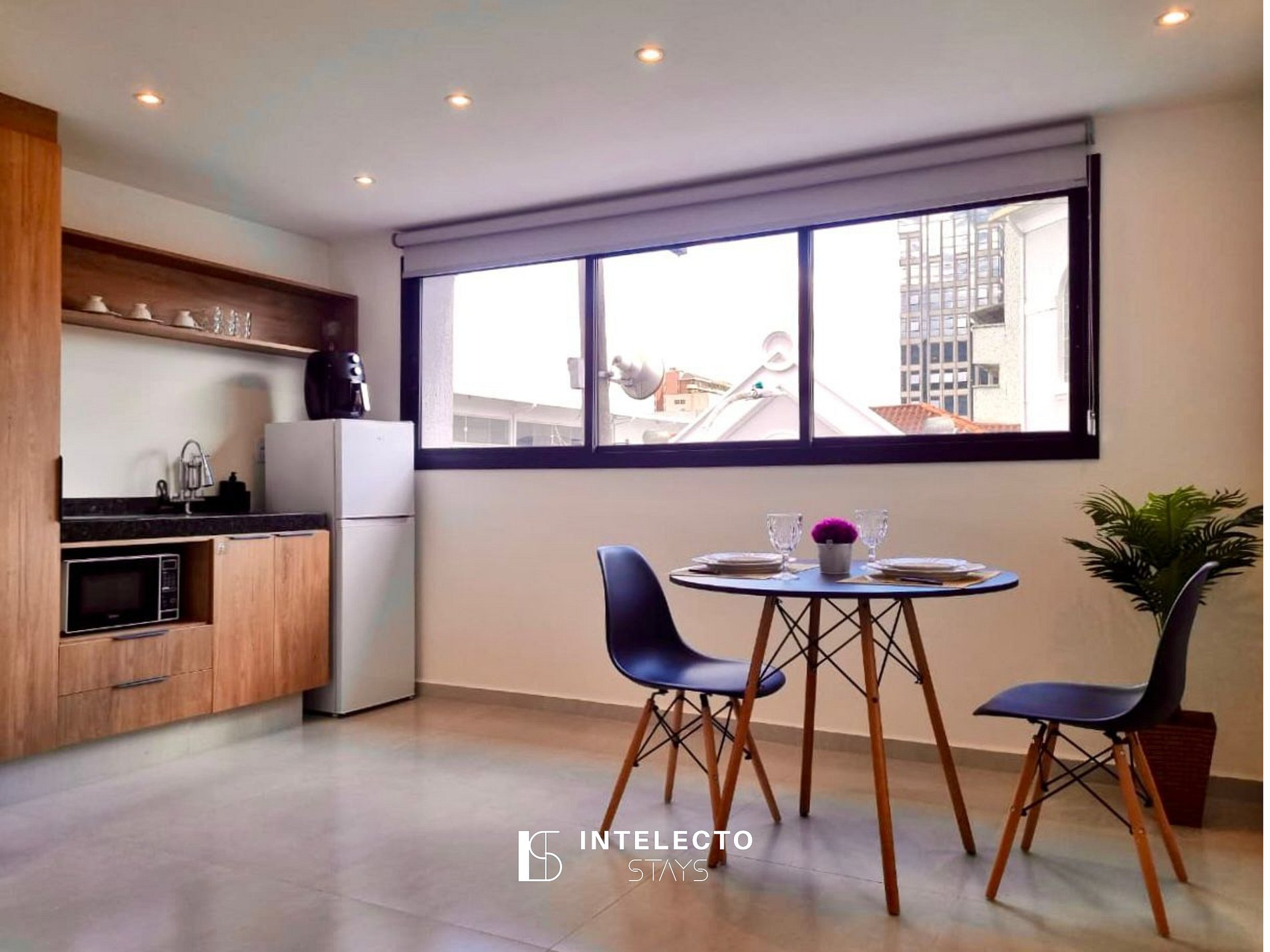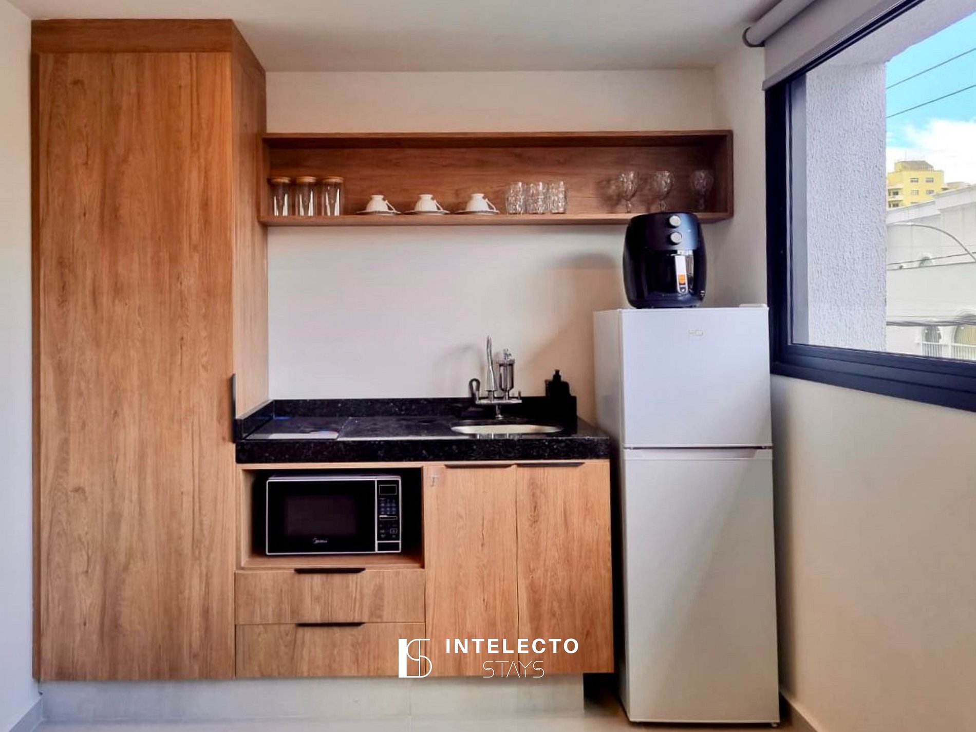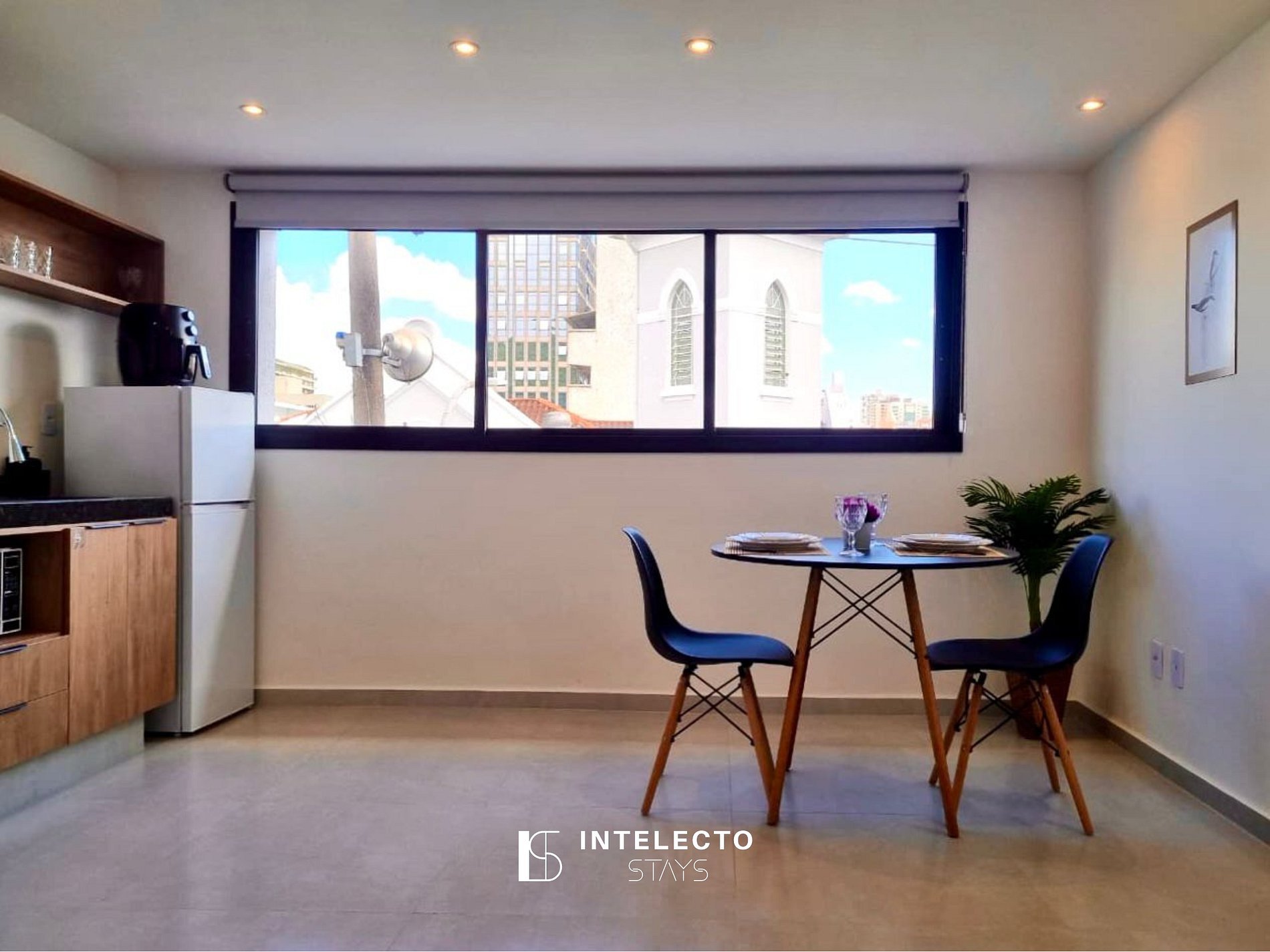 Apê excepcional para relaxar e curtir tudo que há de melhor em Poços. Seja algumas noites ou por meses, nosso studio é o ideal. Prédio nno coração da cidade, perto de tudo, com portaria virtual 24h, todo mobiliado e equipado, muito funcional e confortável. Self check-in fácil, internet ótima, ar condicionado, Smart TV, kit para café, convenio com estacionamento próximo para ter desconto ao deixar seu veiculo. Fornecemos toalha, roupa de cama e coberta