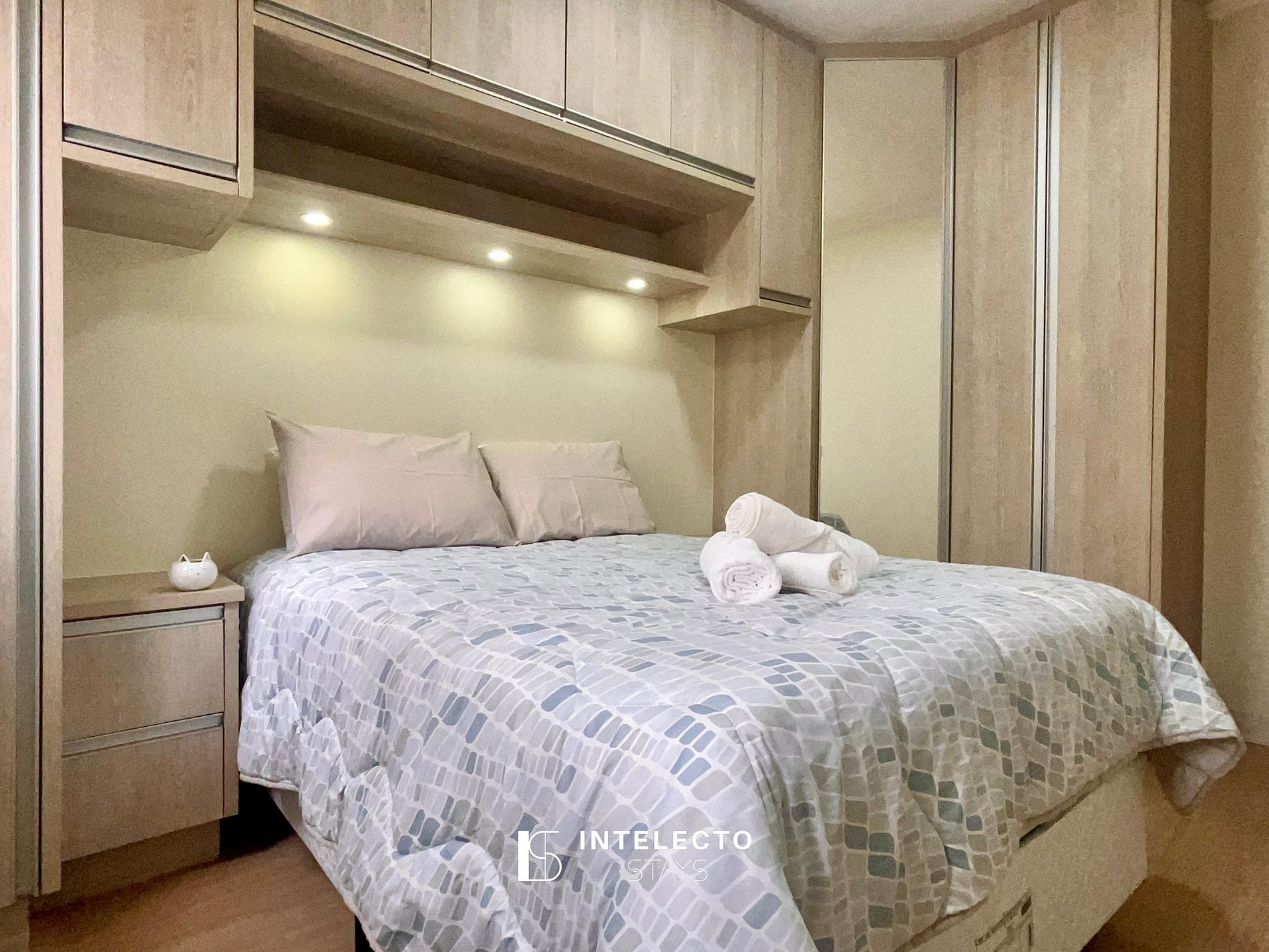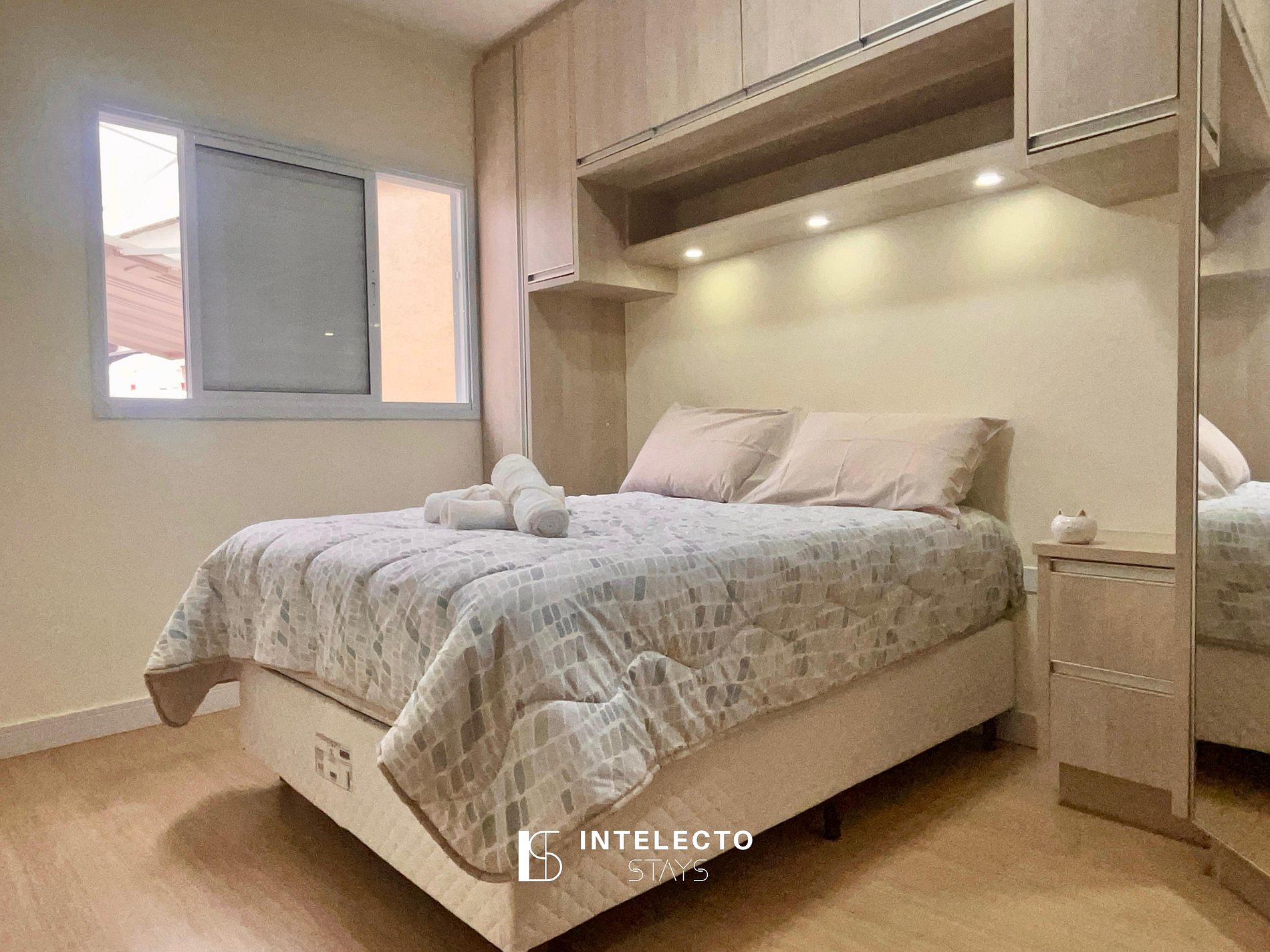 - Um quarto com uma cama de casal