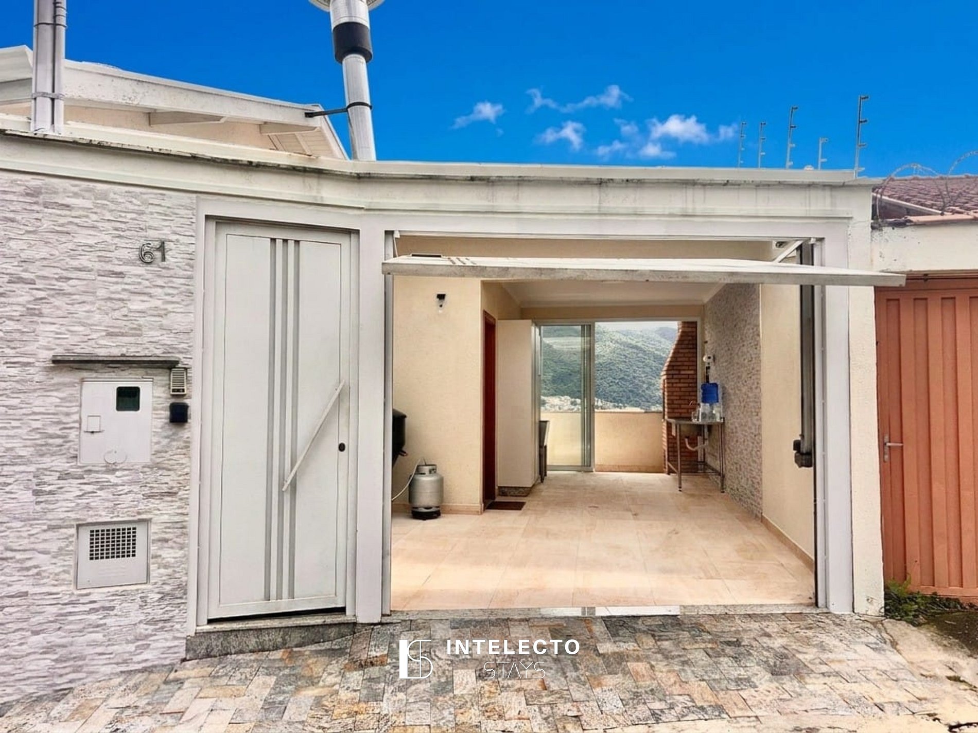 Vocês receberão a senha para acesso às chaves e à fechadura eletrônica. Dentro da casa encontrarão o controle da garagem. A casa será toda de vocês durante a estadia.
