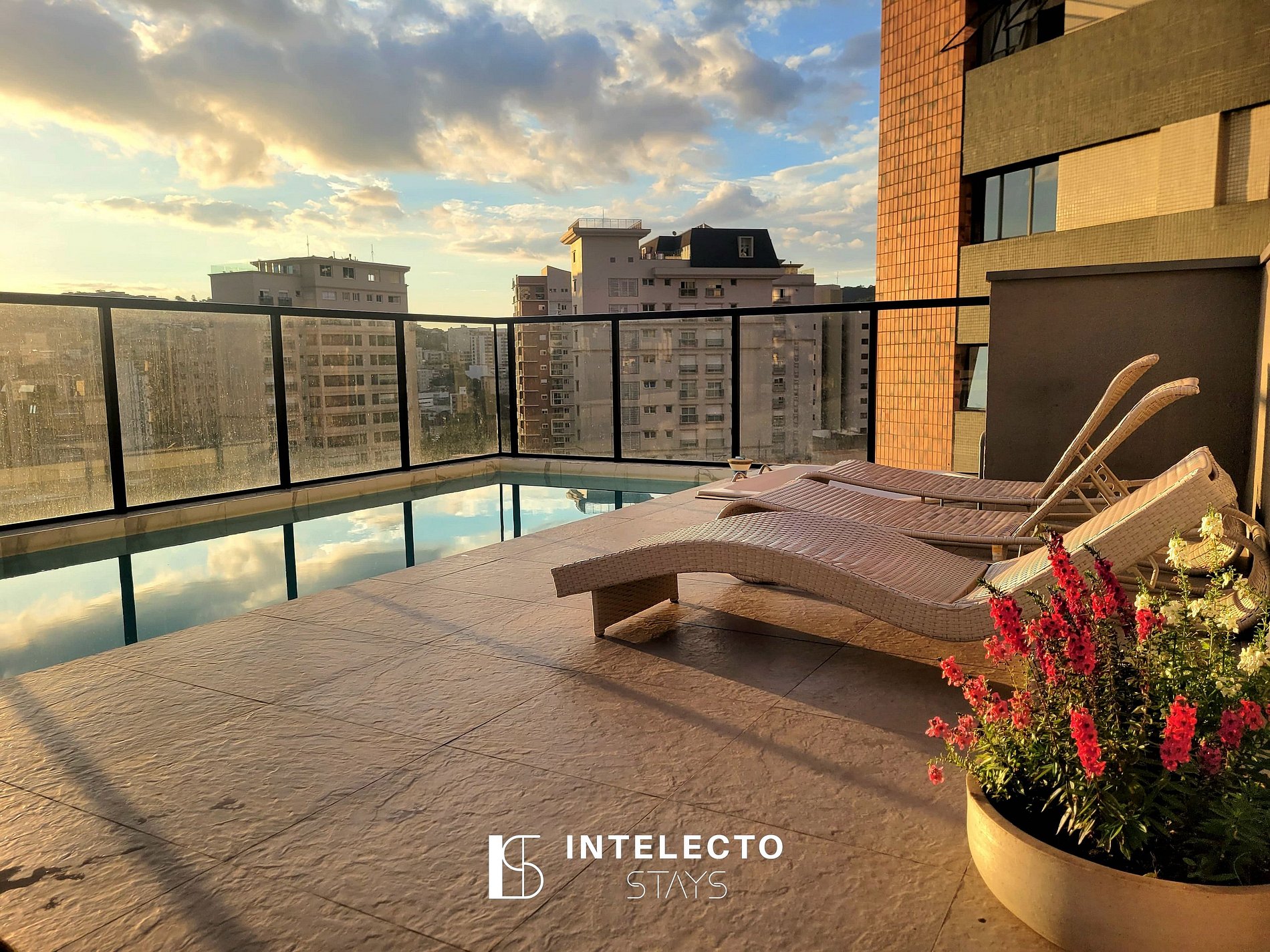 O condomínio está situado na área central de Poços, perto de tudo. É muito tranquilo, seguro e organizado, com portaria 24 horas, self check-in com reconhecimento facial e uma vista linda da cidade.