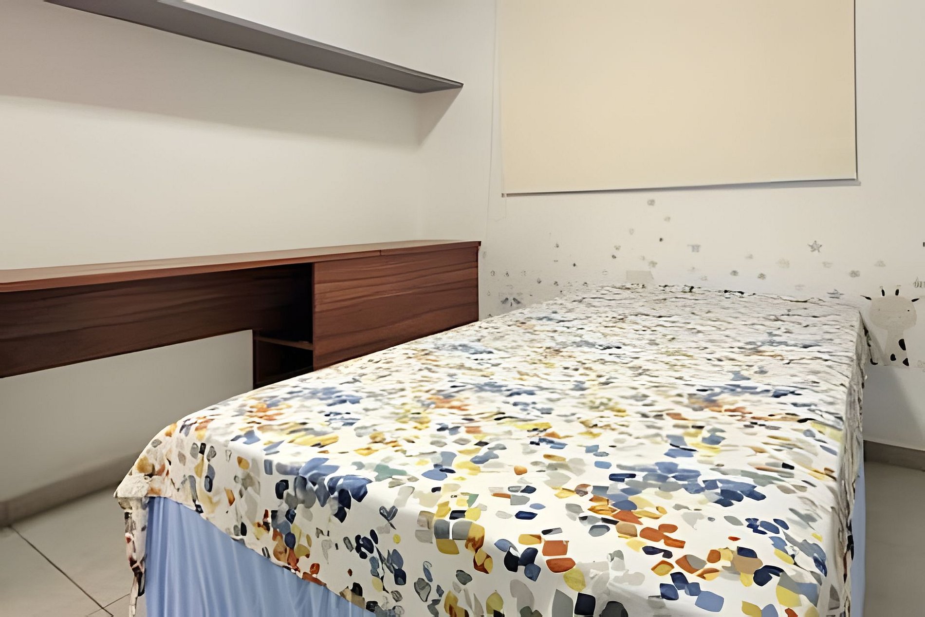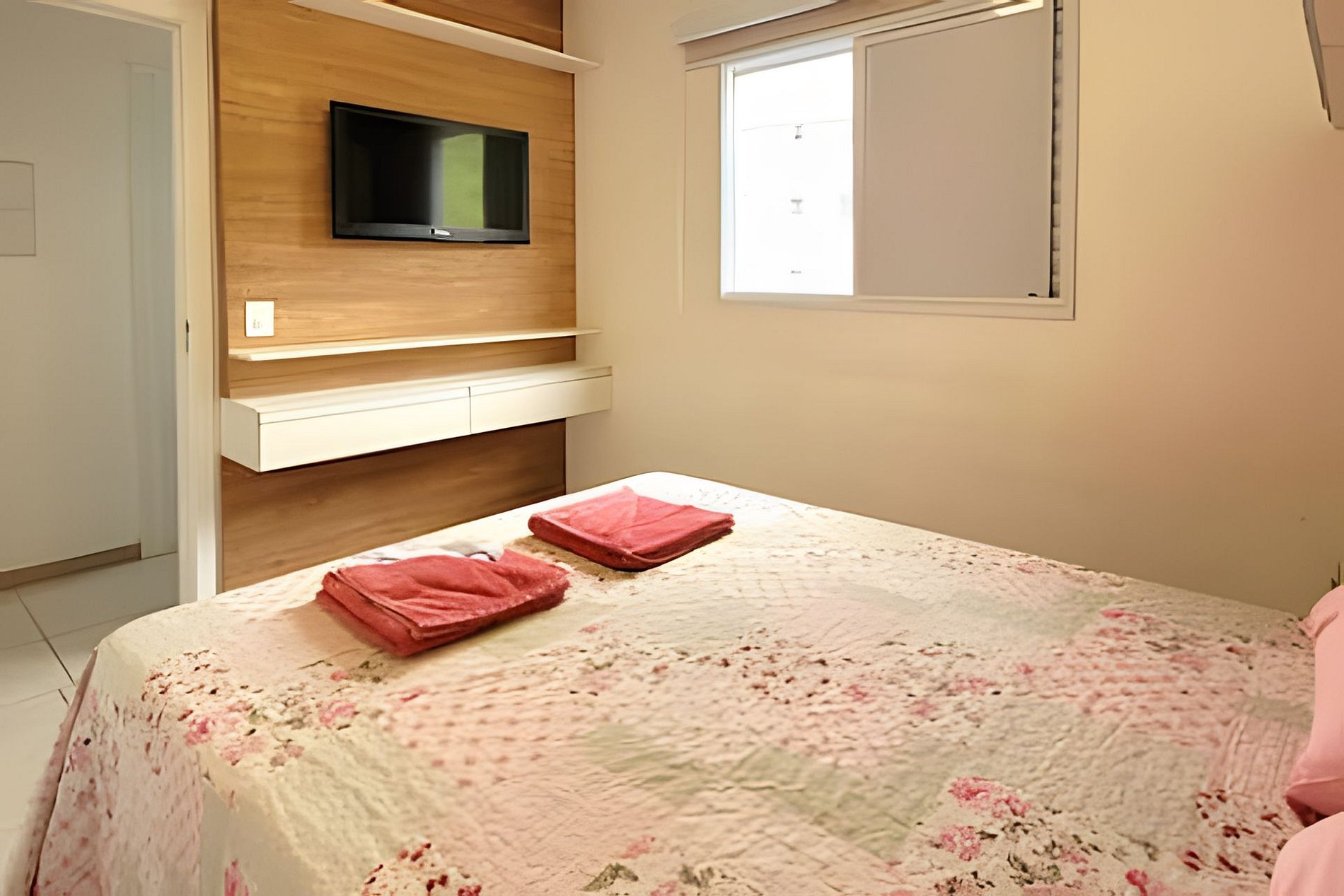 - Dois dormitórios (um quarto com cama de casal e outro com uma cama de solteiro)