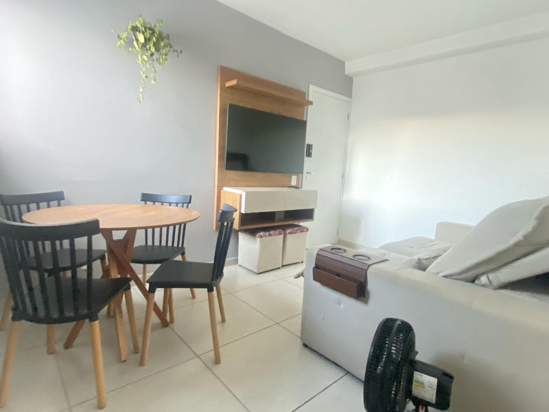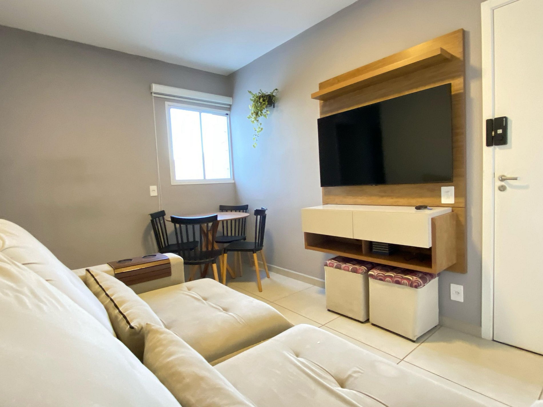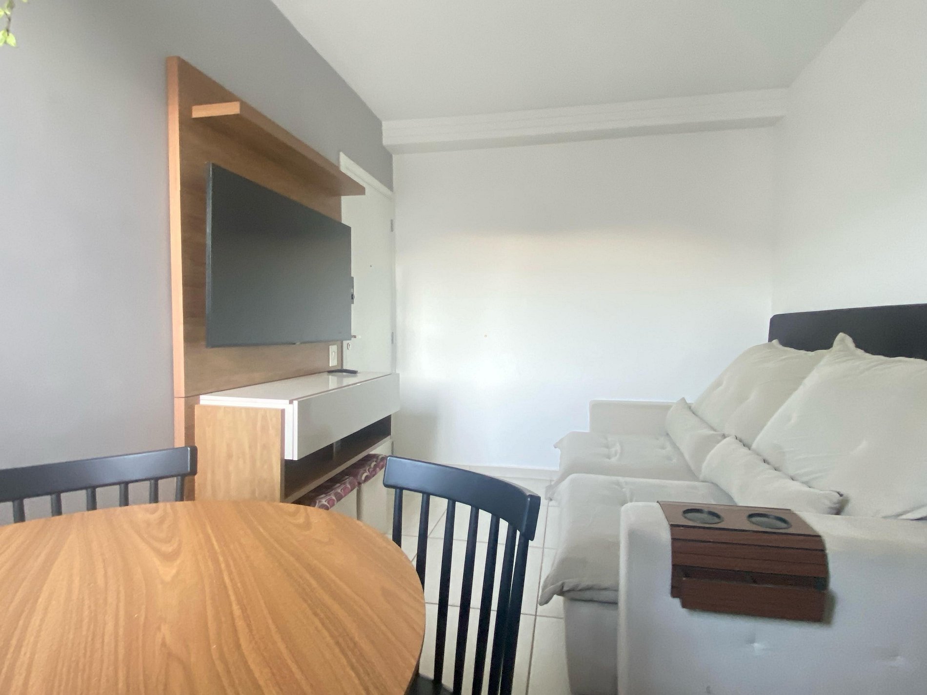 - Sala de dois ambientes aconchegante com mesa de 4 lugares, sofá-cama confortável e SmarTV com streamings.