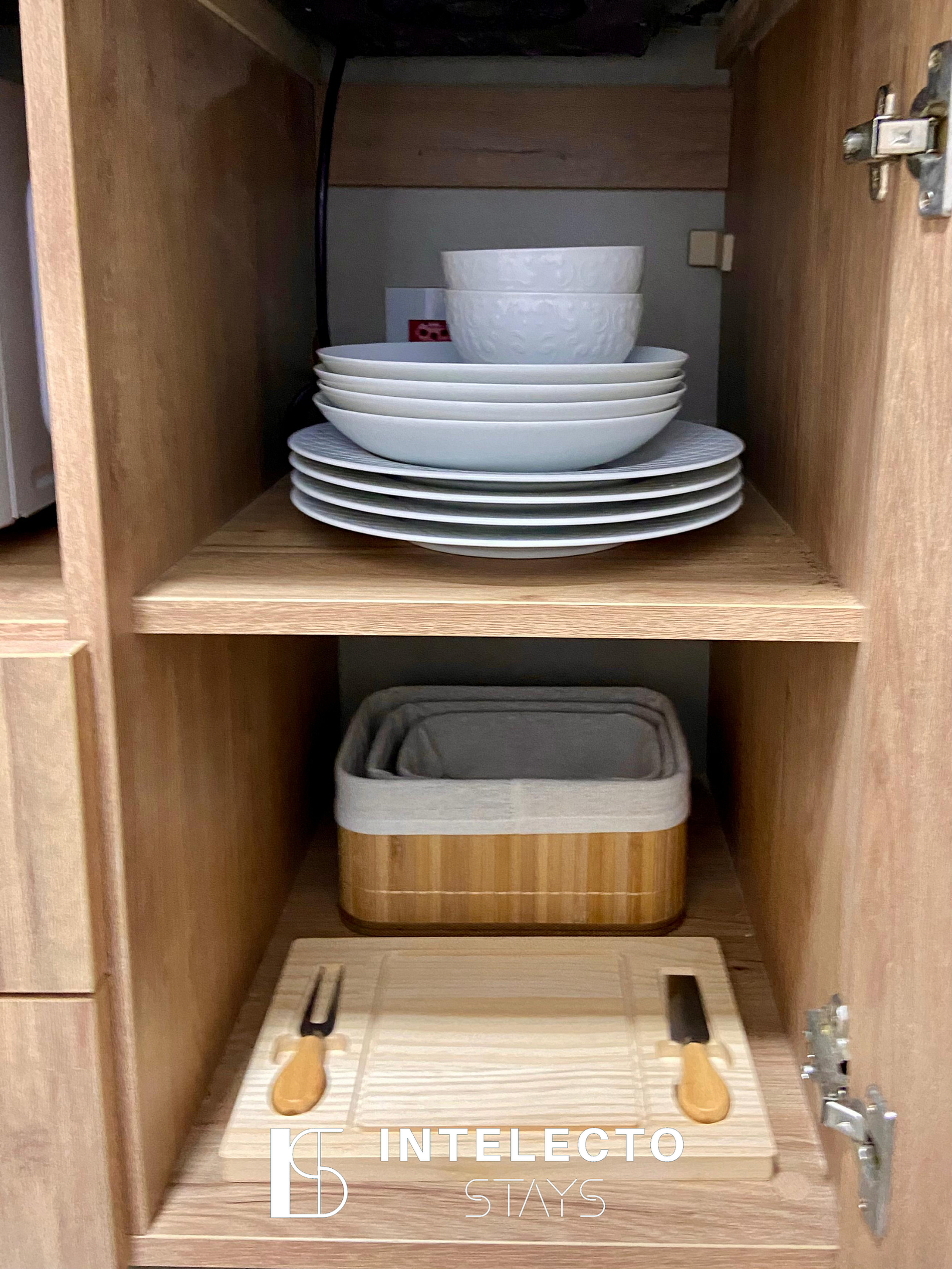 - Espaços integrados (quarto com cama queen e sala de estar com sofá-cama) com armários e guarda-roupas planejados