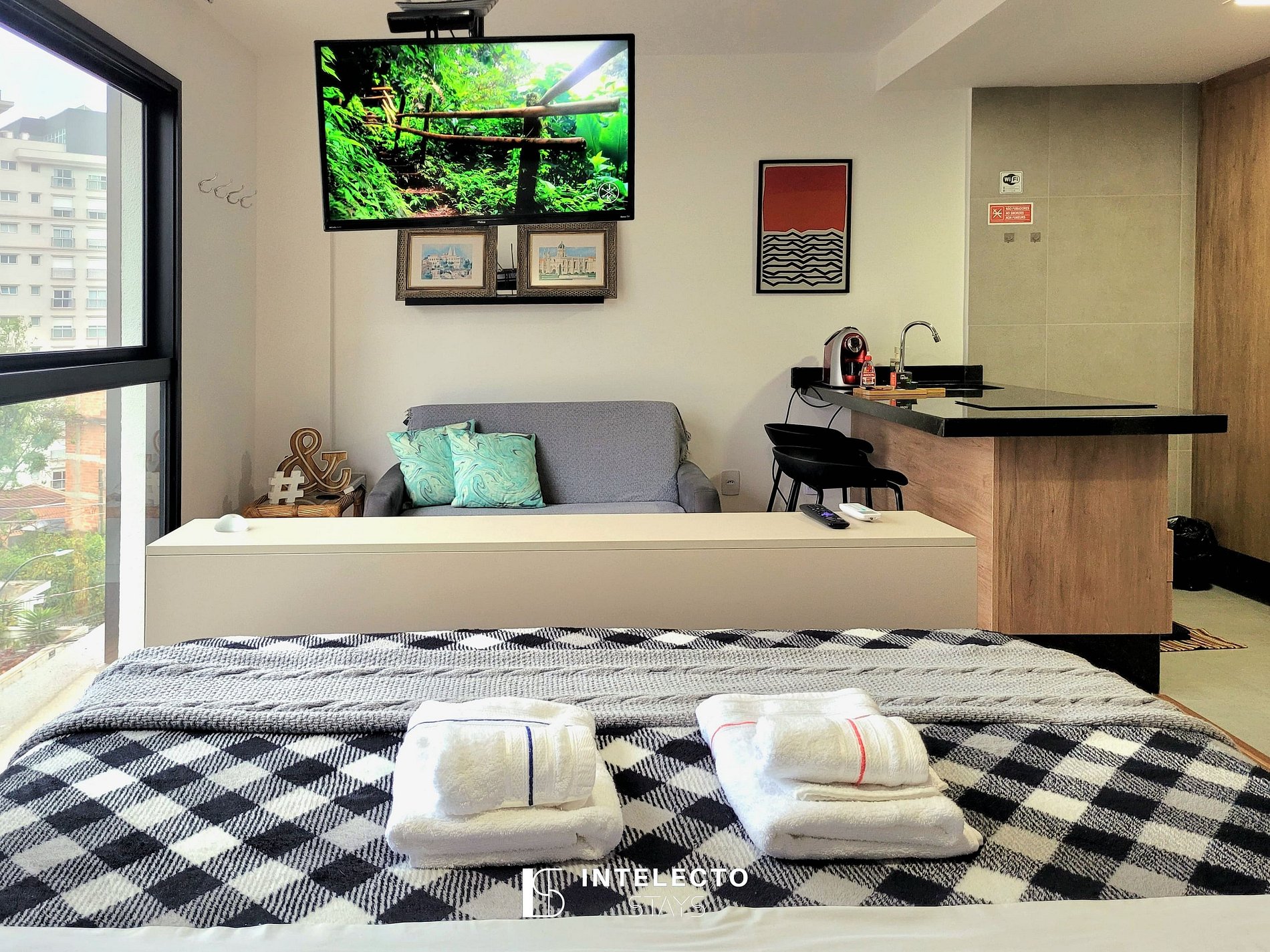 Apê excepcional para relaxar e curtir tudo que há de melhor em Poços. Seja algumas noites ou por meses, nosso studio é o ideal. Prédio na área central da cidade, perto de tudo, com portaria 24h, elevador, piscina, academia, terraço, área gourmet, lavanderia, vista linda, todo mobiliado e equipado, muito funcional e confortável. Self check-in fácil, internet ótima, ar condicionado SmarTV 4K, kit para café, além de vaga coberta de garagem. Fornecemos toalha, roupa de cama e coberta