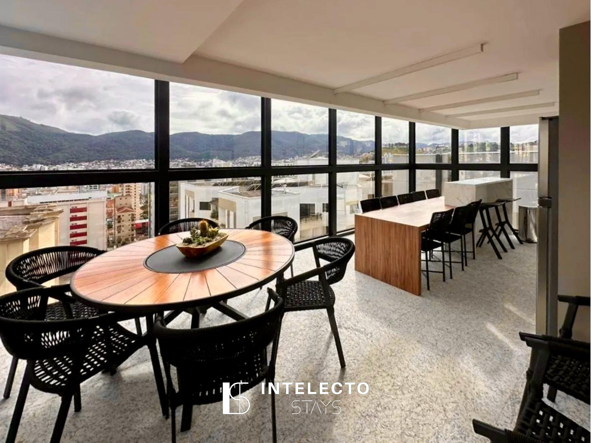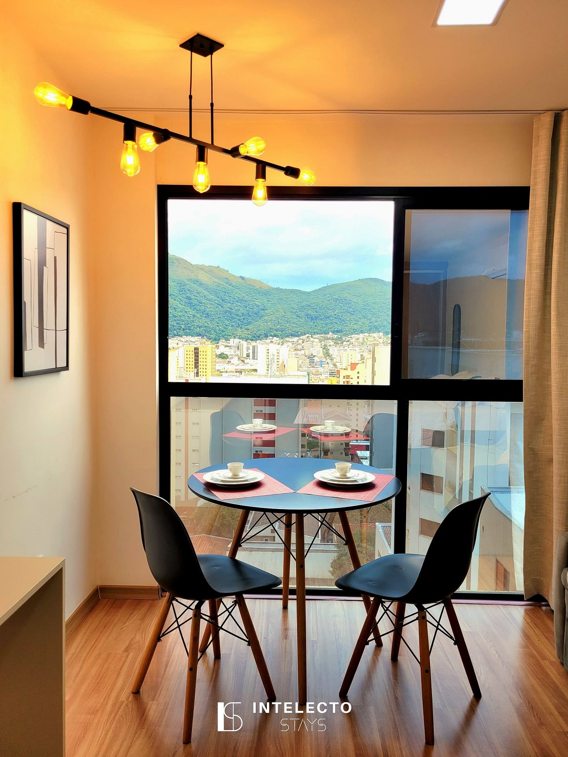 O condomínio está situado na área central de Poços, perto de tudo. É muito tranquilo, seguro e organizado, com portaria 24 horas, self check-in com reconhecimento facial e uma vista linda da cidade.