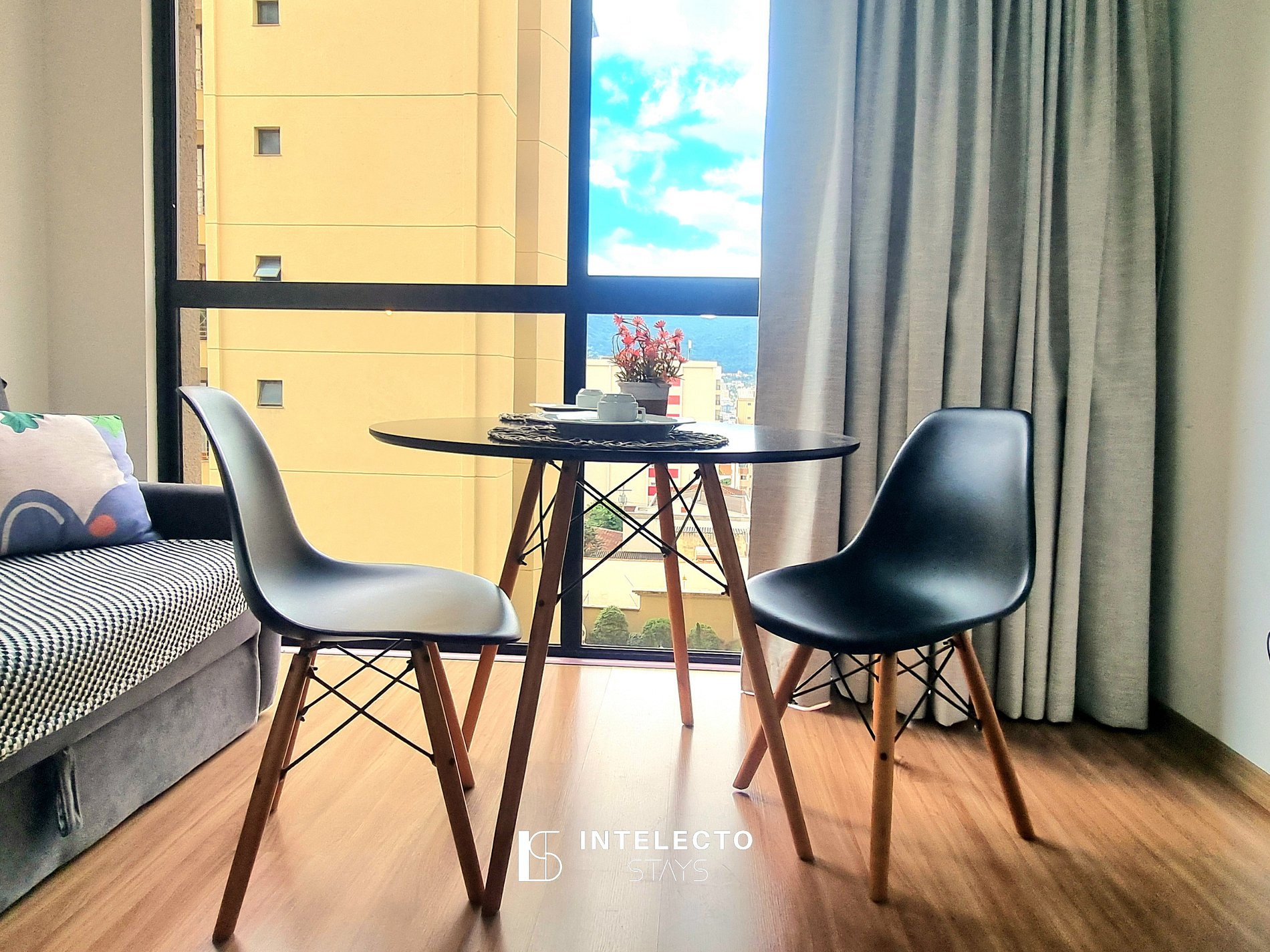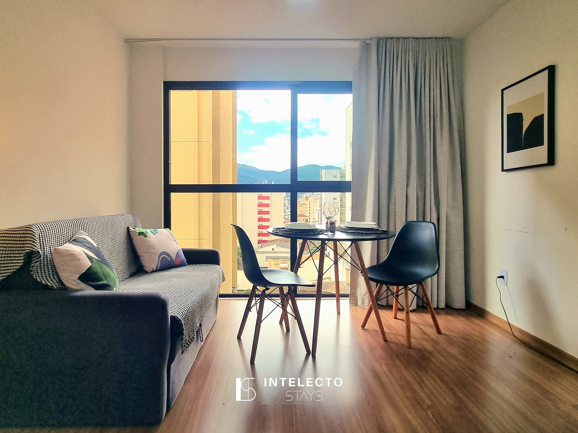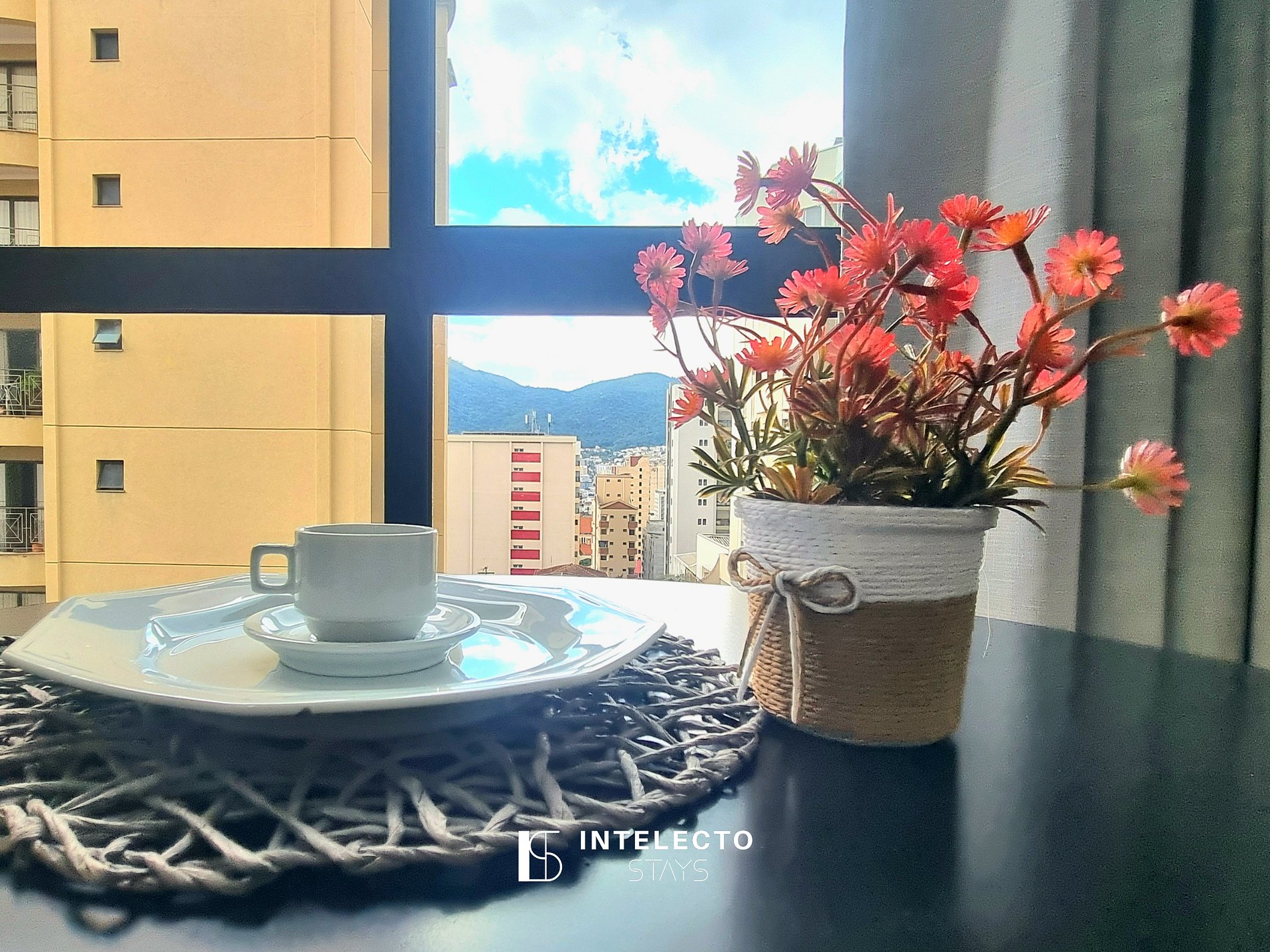 O condomínio está situado na área central de Poços, perto de tudo. É muito tranquilo, seguro e organizado, com portaria 24 horas, self check-in com reconhecimento facial e uma vista linda da cidade.