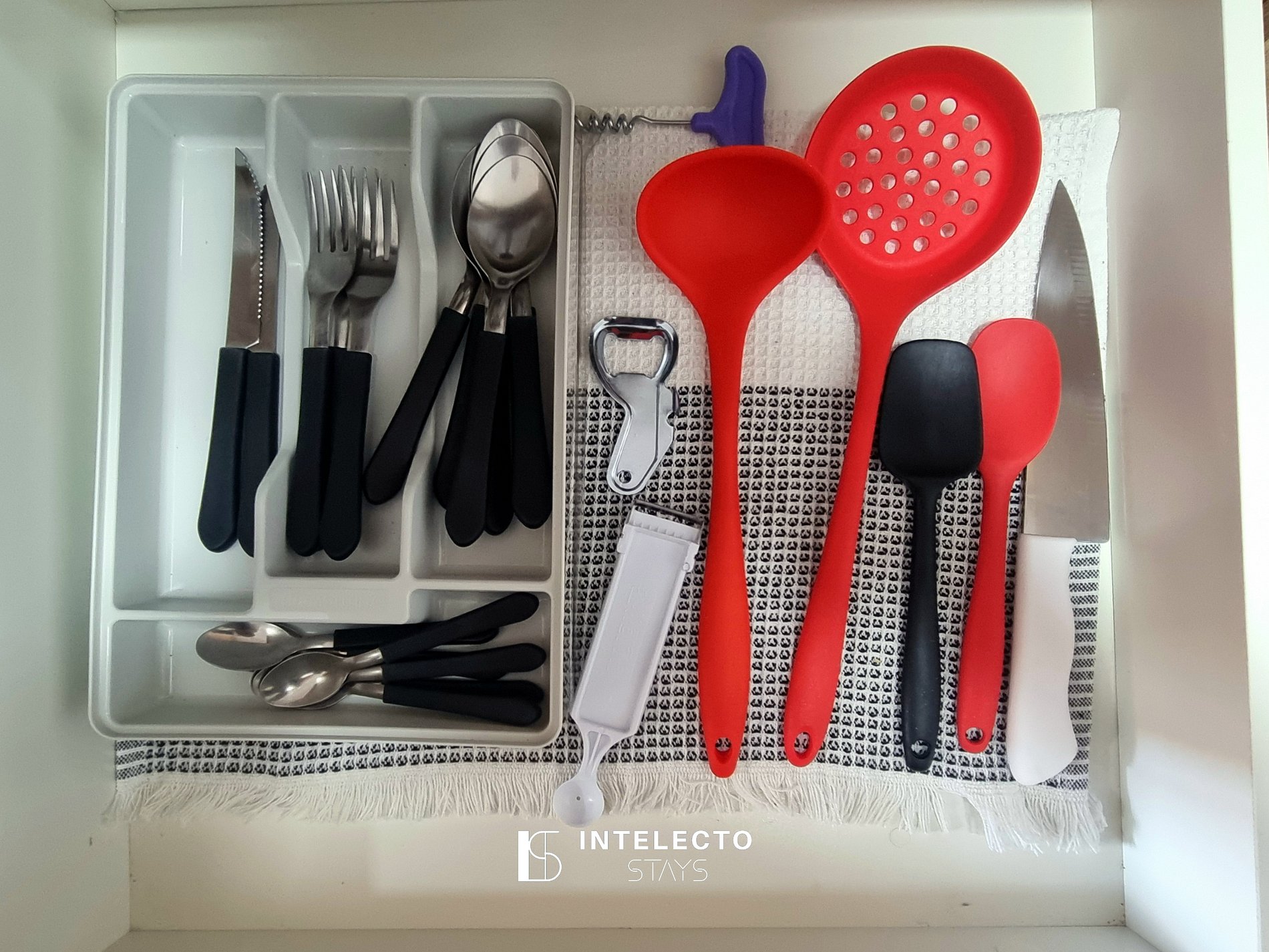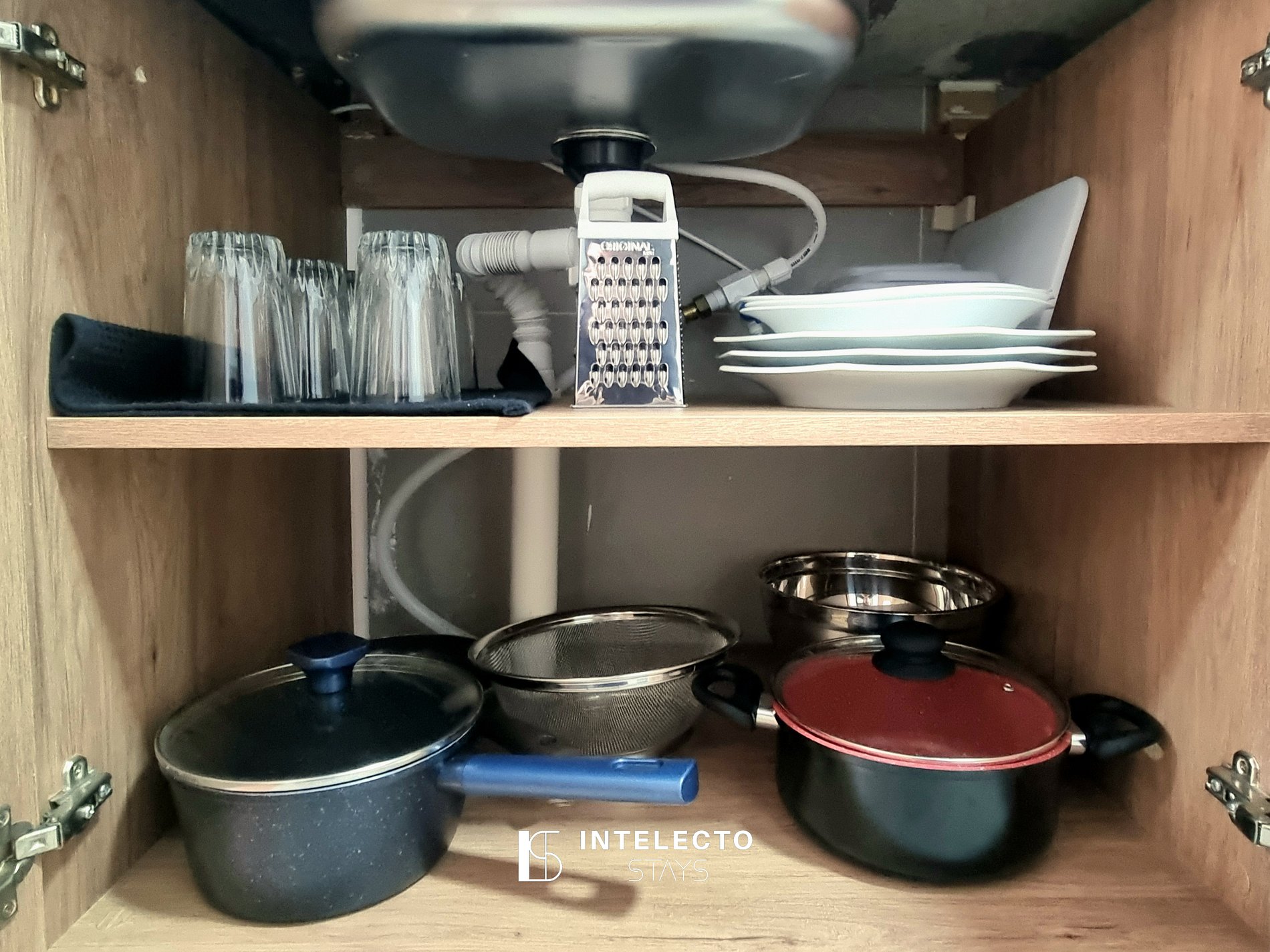 Para facilitar, deixamos na área de serviços alguns produtos de limpeza, para que você possa higienizar tudo com praticidade.