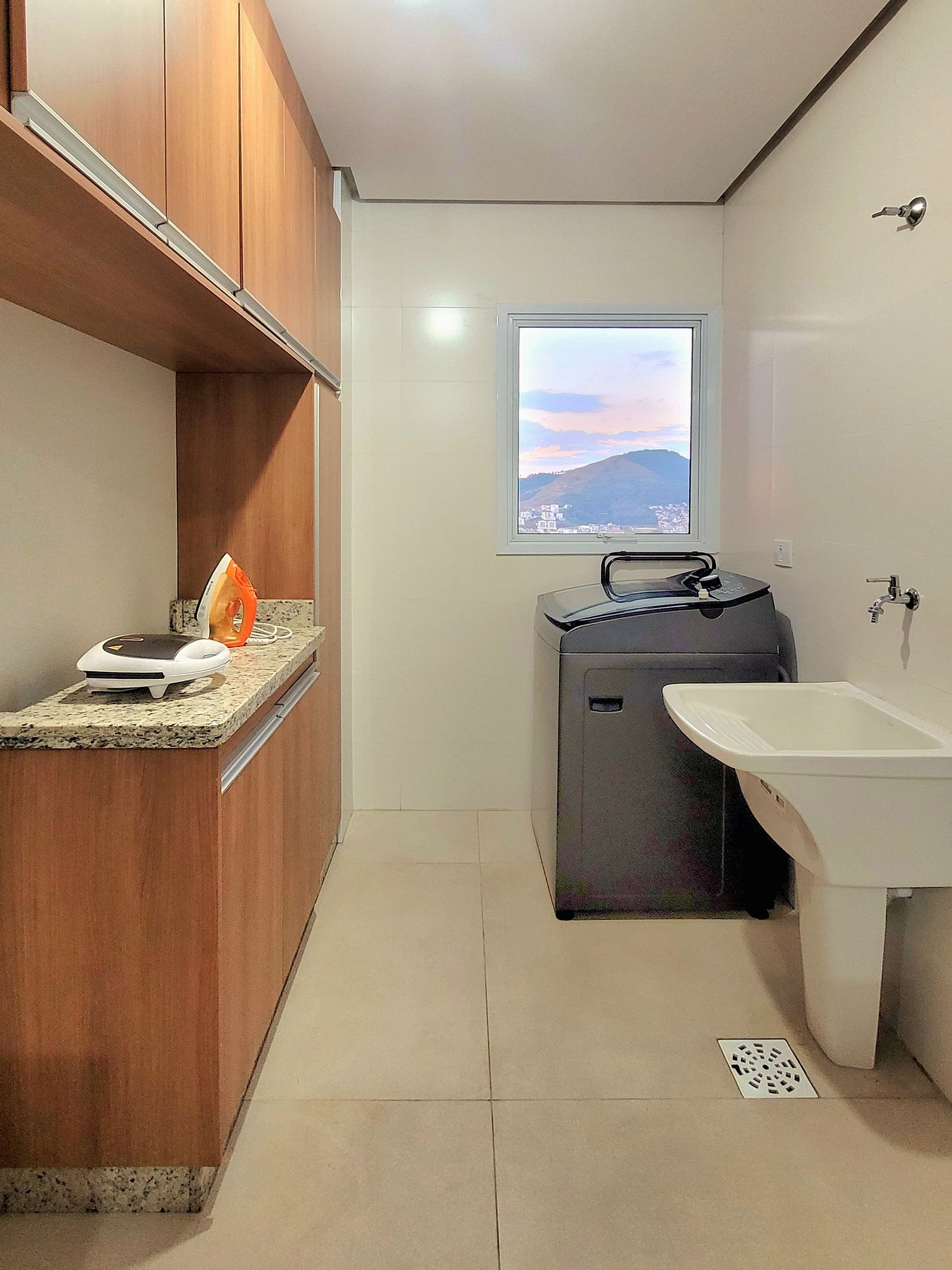 Para facilitar, deixamos na área de serviços alguns produtos de limpeza para que você consiga higienizar com praticidade.